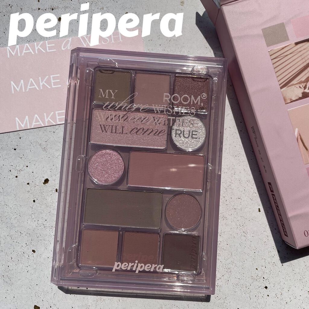 食べ頃モモパレット🍑🥣PERIPERAオールテイクムードパレットハートの型押しがとっても可愛いアイシャドウ💗明度順の1列グラデーションパレット🎨多彩なトーンのアイシャドウが揃っていて、よく使うカラーはたっぷりと入っているのが嬉しいポイントです...