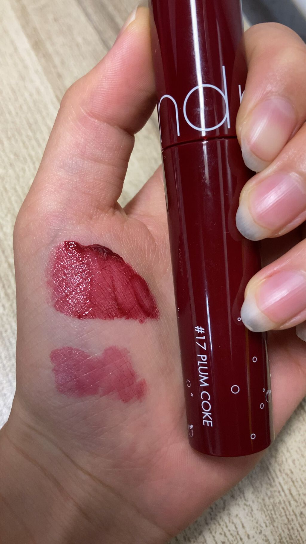 ビターレッドなはず、、だけどオレンジっぽい💦特に1度塗りのティッシュオフ 色持ちはめっちゃいい!! ご飯食べても残ってる めっちゃ水 透明感があってナチュラルな血色リップ ティントなのにまっったく乾燥しなくて逆にずっとうるうる! 安い! 色持ちいい! ナチュラル(クリア系) 濃いメイクする人には合わないかも 赤なのにティッシュオフしたら超オレンジ、、 ティッシュオフしなくてもブラウン感が強いオレンジって感じ😢 ブルベさんはちょーーっと使いにくいかも、(ベタ塗り&2度塗りだったら赤みが少し出るので使えるかも) ⚠️持ち歩きには向きません💦漏れちゃいます🥲私の締め方が緩かったのかな?って思ってたけど皆さん漏れてしまってるようで……気をつけてください!