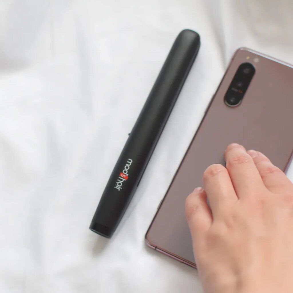 大人気のマスカラのようなモバイルヘアアイロンがリニューアル! さらにコスメ感がアップしてオシャレになったよ🤍 モバイルバッテリーで使えるヘアアイロン✨ メイクと一緒にさっとお直しできちゃう😳🩵 手のひらサイズのコンパクトさと、キャップ付きだから持ち運びに便利なのがとても良い👌