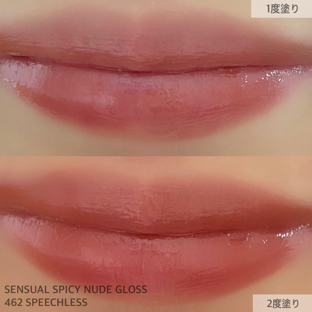 重くならず鮮やかに発色してくれるのが特徴的です。 使いやすいカラーのグロスだと思います。 使いやすいカラーになっています。 たくさんリピしているグロスです。 イエベ秋の人におすすめのグロスです。 もちっりとした重めのテクスチャーです。 もっちりはしてはいるけど口に塗るとそんなに重みも感じず嫌なベタベタ感はありません。 このグロスにはプランプ効果が有り唇をふっくらさせてくれます。 使いやすいグロスだと思います。 グロスを塗る前にリップなどを塗らなくても唇の角質を落ち着かせてくれました。また、唇のシワなども綺麗にカバーしてくれて長時間つけていても乾燥もほぼしませんでした。 ポンっと音がして余分なグロスを落としてくれて適量な分だけ塗れるので良かったです。 塗ったら唇がふっくらとボリュームが出て艶やかな唇に仕上がりました♡ 乾燥もほぼ全くしないので塗り直しとそんなにせずに済むのも◎