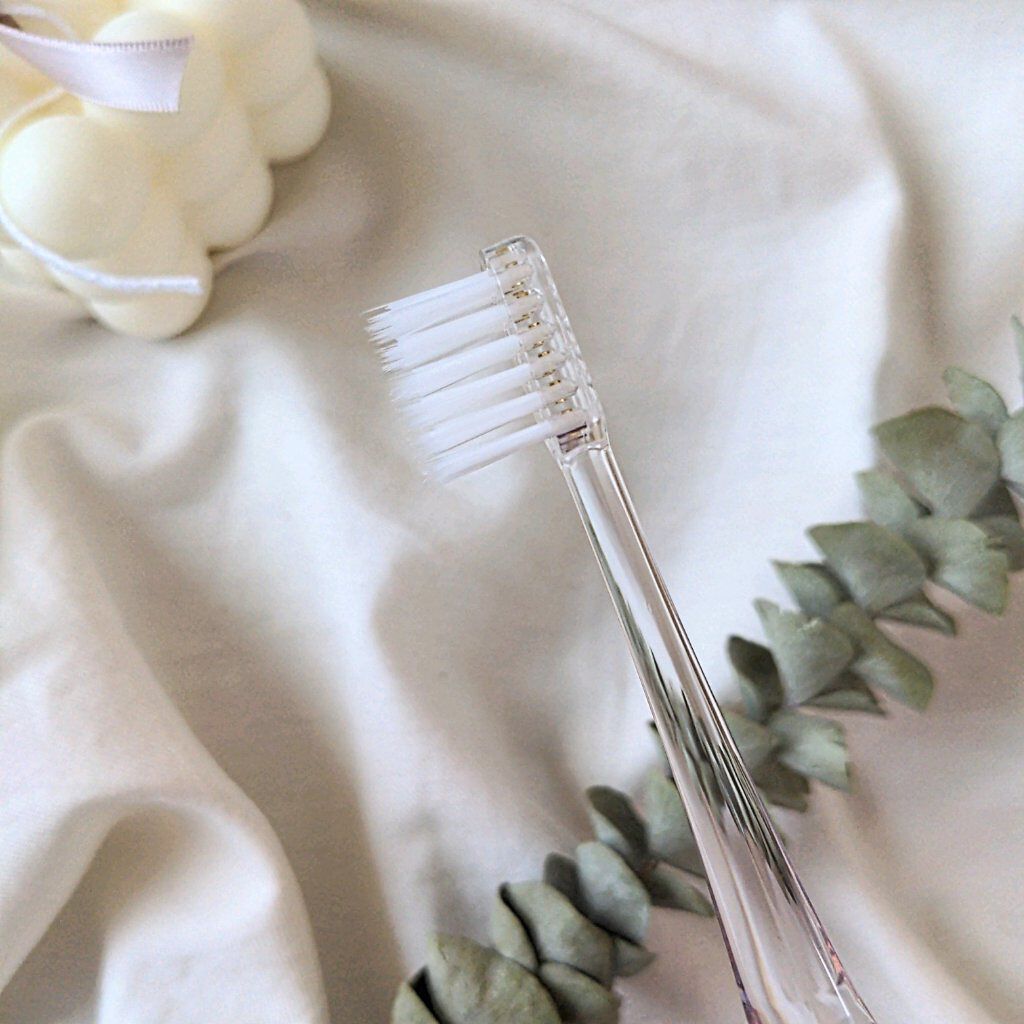 クリスタルをイメージした歯ブラシです透明ハンドルは81面カッティングされ1粒のクリスタルがあしらわれていて美しい高級感を演出してくれますカラー展開は4色クリスタル(透明)バイオレット(紫)ローズ(ピンク)トパーズ(黄)今回はバイオレットを試さ...