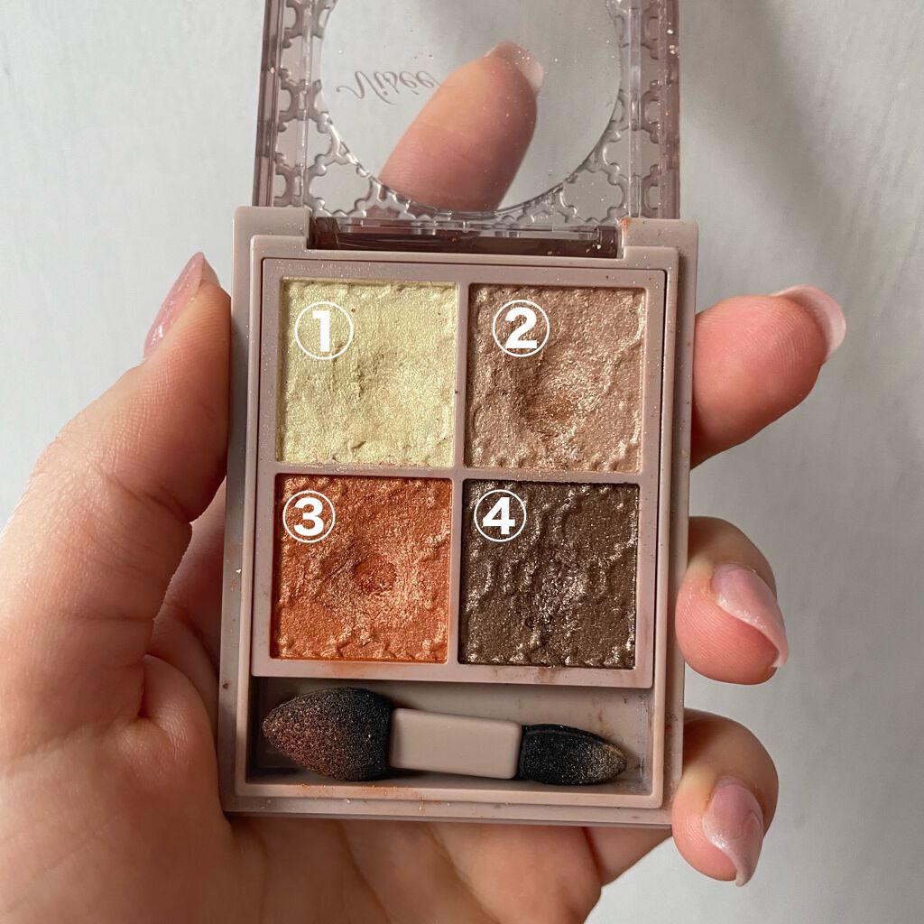 - 上質なツヤめきとクリアな発色がとけこみ、大人のうるみ目を叶える4 色セットアイカラーです。 しっとりタッチのクリーミィベース×3 色のグラデーションカラーで印象的な目もとに仕上げます。 美容液成分配合。メイクしながらうるおいを保ちます。 無香料 美容液成分〔ヒアルロン酸・スクワラン〕(保湿)