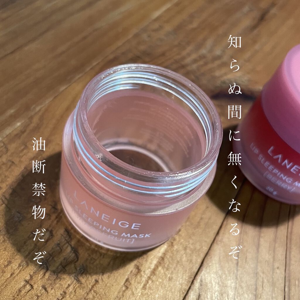 - 寝ている間にケアしてふっくらぷるぷるにうるおった唇へ。 2015年の初代発売以降、世界で2秒に1個売れている*¹LANEIGE大ヒットシリーズ *¹ 2024年グローバル販売実績 1.角質にアプローチするBerryFruitComplex (ベリーフルーツコンプレックス)*²が、 寝ている間に気になる乾燥や角質にうるおいを与え、つやのあるふっくらとうるおった唇に仕上げます。 *²ザクロ果実エキス、ブドウ果実エキス、ラズベリー果実エキス 2.ココナッツオイル(ヤシ油)を配合で、うるおいをあたえ睡眠中の乾燥を防ぎます。 3.今夜はどんな気分?5つのフレーバーから選べるワクワク感。 ■テクスチャー:やさしく馴染むなめらかなバームタイプ ■アレルギーテスト済み*³ *³全ての方にアレルギーが起こらないということではありません。 ■使用方法 寝る前に唇にたっぷり塗り、そのままお休みください。 翌朝、軽くティッシュオフします。付属のスパチュラで塗ることで、より唇の角質に馴染みやすくなります。 日中のリップトリートメントにも使用できます。