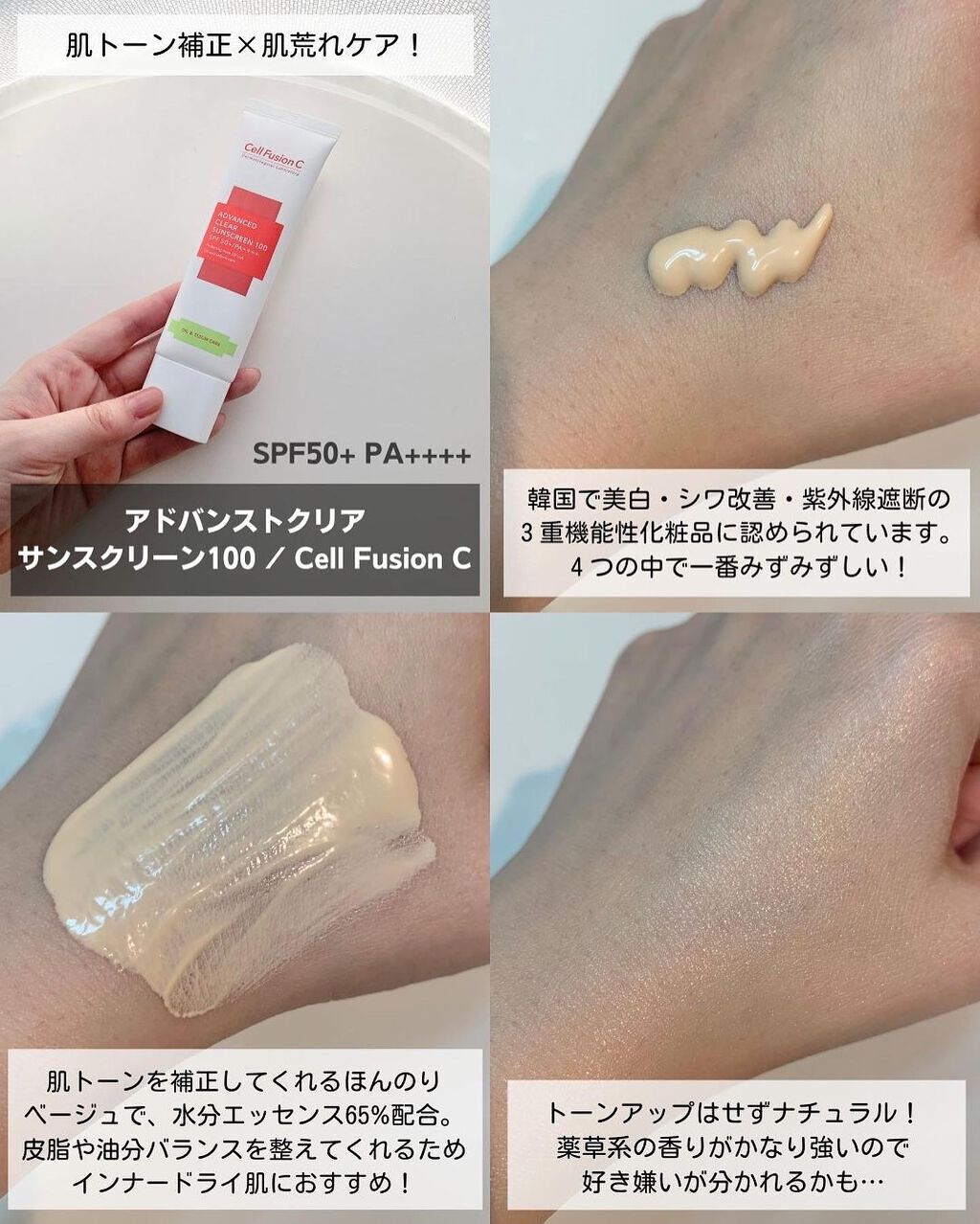 セルフュージョンCの日焼け止めの中でも日本で1番人気なアクアティカサンスクリーン。人気の秘密はトリプルヒアルロン酸配合の水分感たっぷりの使用感。 水分クリームのような使い心地のテクスチャーで、日焼け止めが苦手な人にもおすすめだよ。 べたつきや白浮きもないから、顔だけじゃなく首や腕、デコルテなど全身に使えるの。