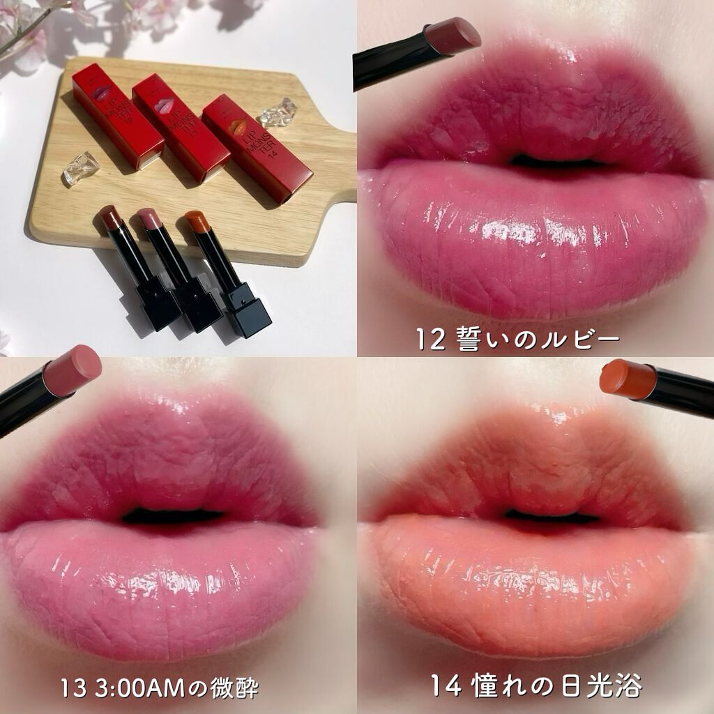 - <01 欲望の塊> テトライソステアリン酸ジペンタエリスリチル、トリ(カプリル酸/カプリン酸)グリセリル、オクチルドデカノール、ラウロイルグルタミン酸ジ(フィトステリル/オクチルドデシル)、ビスアルキル(C16-18)グリセリルウンデシルジメチコン、イソノナン酸イソトリデシル、水添ポリイソブテン、ラウロイルグルタミン酸ジ(オクチルドデシル/フィトステリル/ベヘニル)、パラフィン、合成ワックス、ダイマージリノール酸(フィトステリル/イソステアリル/セチル/ステアリル/ベヘニル)、マイクロクリスタリンワックス、水添マイクロクリスタリンワックス、ヒドロキシステアリン酸エチルヘキシル、トコフェロール、ホホバ種子油、オリーブ果実油、アーモンド油、(エチレン/プロピレン)コポリマー、ポリエチレン、ジメチコン、(+/-)(チタン/酸化チタン)焼結物、マイカ、ラウロイルアスパラギン酸Na、ラウロイルリシン、塩化亜鉛、酸化チタン、酸化鉄、水酸化Al、硫酸Ba、トリイソステアリン酸イソプロピルチタン、酸化スズ、ホウケイ酸(Ca/Al)、合成フルオロフロゴパイト、黄4、黄5、赤104(1)、赤201、赤202 <02 ピンクバナナ> テトライソステアリン酸ジペンタエリスリチル、トリ(カプリル酸/カプリン酸)グリセリル、オクチルドデカノール、ラウロイルグルタミン酸ジ(フィトステリル/オクチルドデシル)、ビスアルキル(C16-18)グリセリルウンデシルジメチコン、イソノナン酸イソトリデシル、水添ポリイソブテン、ラウロイルグルタミン酸ジ(オクチルドデシル/フィトステリル/ベヘニル)、パラフィン、合成ワックス、ダイマージリノール酸(フィトステリル/イソステアリル/セチル/ステアリル/ベヘニル)、マイクロクリスタリンワックス、水添マイクロクリスタリンワックス、ヒドロキシステアリン酸エチルヘキシル、トコフェロール、ホホバ種子油、オリーブ果実油、アーモンド油、(エチレン/プロピレン)コポリマー、ポリエチレン、ジメチコン、(+/-)(チタン/酸化チタン)焼結物、マイカ、ラウロイルアスパラギン酸Na、ラウロイルリシン、塩化亜鉛、酸化チタン、酸化鉄、水酸化Al、硫酸Ba、トリイソステアリン酸イソプロピルチタン、酸化スズ、ホウケイ酸(Ca/Al)、合成フルオロフロゴパイト、黄4、黄5、赤104(1)、赤201、赤202 <03 陽炎> テトライソステアリン酸ジペンタエリスリチル、トリ(カプリル酸/カプリン酸)グリセリル、オクチルドデカノール、ラウロイルグルタミン酸ジ(フィトステリル/オクチルドデシル)、ビスアルキル(C16-18)グリセリルウンデシルジメチコン、イソノナン酸イソトリデシル、水添ポリイソブテン、ラウロイルグルタミン酸ジ(オクチルドデシル/フィトステリル/ベヘニル)、パラフィン、合成ワックス、ダイマージリノール酸(フィトステリル/イソステアリル/セチル/ステアリル/ベヘニル)、マイクロクリスタリンワックス、水添マイクロクリスタリンワックス、ヒドロキシステアリン酸エチルヘキシル、トコフェロール、ホホバ種子油、オリーブ果実油、アーモンド油、(エチレン/プロピレン)コポリマー、ポリエチレン、ジメチコン、(+/-)(チタン/酸化チタン)焼結物、マイカ、ラウロイルアスパラギン酸Na、ラウロイルリシン、塩化亜鉛、酸化チタン、酸化鉄、水酸化Al、硫酸Ba、トリイソステアリン酸イソプロピルチタン、酸化スズ、ホウケイ酸(Ca/Al)、合成フルオロフロゴパイト、黄4、黄5、赤104(1)、赤201、赤202 <04 パンプキンワイン> テトライソステアリン酸ジペンタエリスリチル、トリ(カプリル酸/カプリン酸)グリセリル、オクチルドデカノール、ラウロイルグルタミン酸ジ(フィトステリル/オクチルドデシル)、ビスアルキル(C16-18)グリセリルウンデシルジメチコン、イソノナン酸イソトリデシル、水添ポリイソブテン、ラウロイルグルタミン酸ジ(オクチルドデシル/フィトステリル/ベヘニル)、パラフィン、合成ワックス、ダイマージリノール酸(フィトステリル/イソステアリル/セチル/ステアリル/ベヘニル)、マイクロクリスタリンワックス、水添マイクロクリスタリンワックス、ヒドロキシステアリン酸エチルヘキシル、トコフェロール、ホホバ種子油、オリーブ果実油、アーモンド油、(エチレン/プロピレン)コポリマー、ポリエチレン、ジメチコン、(+/-)(チタン/酸化チタン)焼結物、マイカ、ラウロイルアスパラギン酸Na、ラウロイルリシン、塩化亜鉛、酸化チタン、酸化鉄、水酸化Al、硫酸Ba、トリイソステアリン酸イソプロピルチタン、酸化スズ、ホウケイ酸(Ca/Al)、合成フルオロフロゴパイト、黄4、黄5、赤104(1)、赤201、赤202 <05 ダークフィグ> テトライソステアリン酸ジペンタエリスリチル、トリ(カプリル酸/カプリン酸)グリセリル、オクチルドデカノール、ラウロイルグルタミン酸ジ(フィトステリル/オクチルドデシル)、ビスアルキル(C16-18)グリセリルウンデシルジメチコン、イソノナン酸イソトリデシル、水添ポリイソブテン、ラウロイルグルタミン酸ジ(オクチルドデシル/フィトステリル/ベヘニル)、