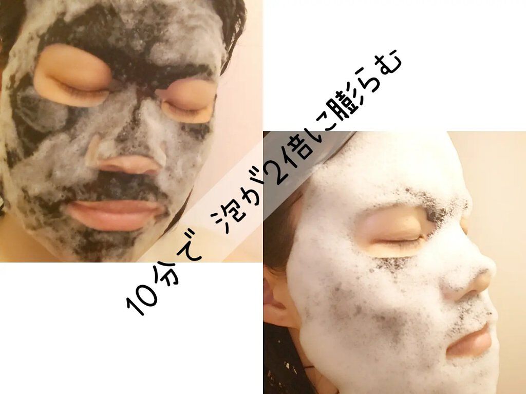 泡のパックが面白い🌟パックの時間をおいたら、洗い流すタイプよくパックを揉んでから使う顔に貼っているうちに手も泡だらけ顔に貼ると泡がどんどん増えて面白い🌟シートを顔にのせるだけで 皮脂汚れなどの吸着効果が高いチャコールバブル(竹炭泡)が発泡し毛...