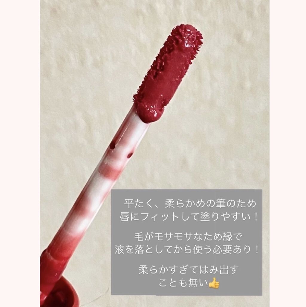 塗った瞬間からみずみずしいウォータリーなツヤが魅力のリップ💄💕 濡れたようなツヤツヤリップに仕上がります🥰 ベタベタせず使いやすく、ティッシュオフすると落ちにくいです🙋🏻♀️✨ 濃いブラウンですが透け感があるので思ったより使いやすいです😊
