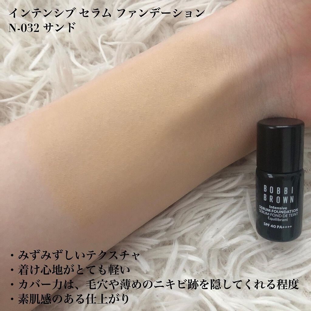 BOBBIBROWNインテンシブセラムファンデーションW-026ウォームアイボリー美容液ファンデだから軽くてツヤツヤなのをイメージしてたけど、良くも悪くも普通のファンデーションだった思ったよりカバー力が高いのは良かったけど、ツヤがそこまで無く...