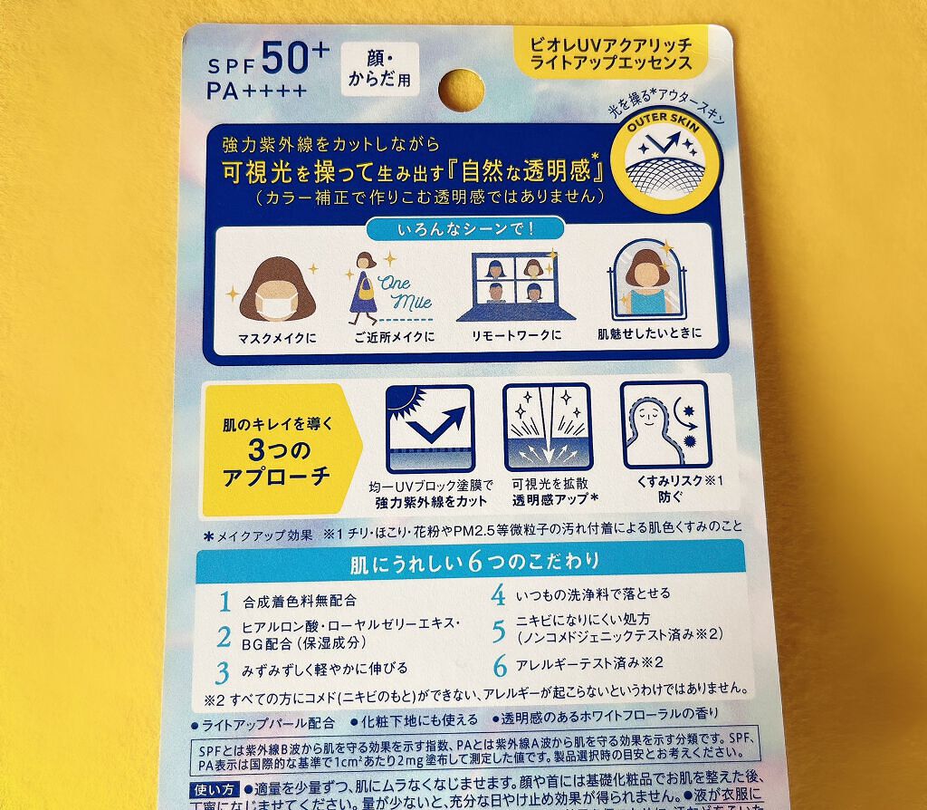 - SPF50+ãPA++++ è衚é¢ã«ãã¡ãã埮现ãªå¹åžå¡èãã€ãããå¯èŠå ã倿¹é¢ã«æ¡æ£ãããå¯èŠå ã³ã³ãããŒã«æè¡ã«ããããµãããèŒãèã«ä»äžããŸãã åæçè²æç¡é åã 䌞ã°ãããã身äœã«çœæ®ããã«ããã®ã§ãå šèº«ã«äœ¿ãããããæããã¹ã¯ãžã®è²ç§»ããæ°ã«ãªããŸããã 玫å€ç·ããã£ããé²ãã誰ã䜿ã£ãŠãæè»œã«å šèº«éææã¢ããâ»1ã§ããæ¥ããæ¢ããšããŠãæ¥åžžäœ¿ãã«ããããã§ãã â»1ã¡ã€ã¯ã¢ãã广 â»ããã±ãŒãžãªãã¥ãŒã¢ã«æžã¿ã