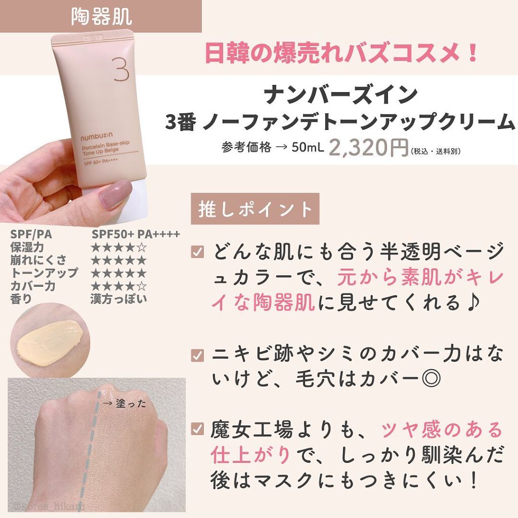 numbuzin 3番 ノーファンデ陶器肌トーンアップクリーム | 2,310円 |