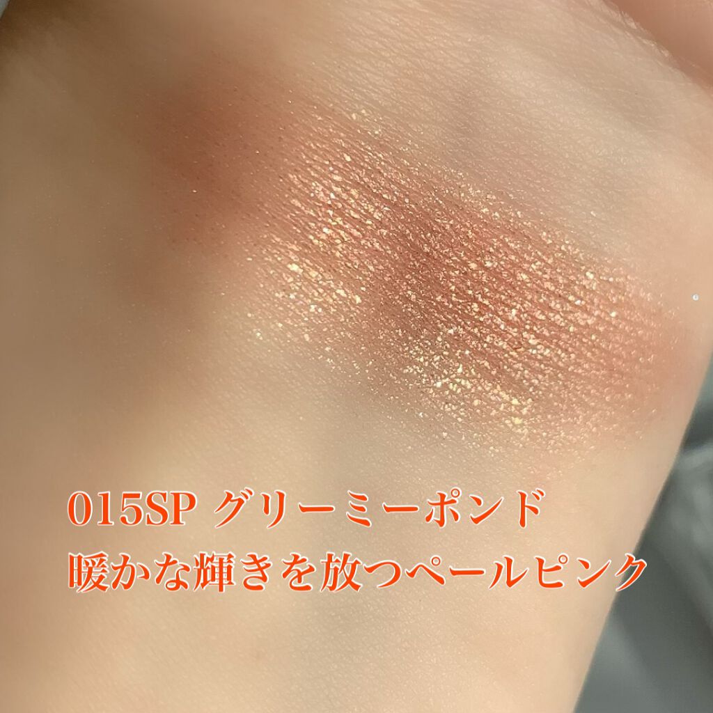 ADDICTIONザアイシャドウスパークル013SPMissYouMore015SPGleamyPondピンクとピーチ?色のアイシャドウ画像の通り、ラメがキラキラというよりギラギラ寄り。シルバーラメが輝くミスユーモアは塗ると意外と薄付き。単色...