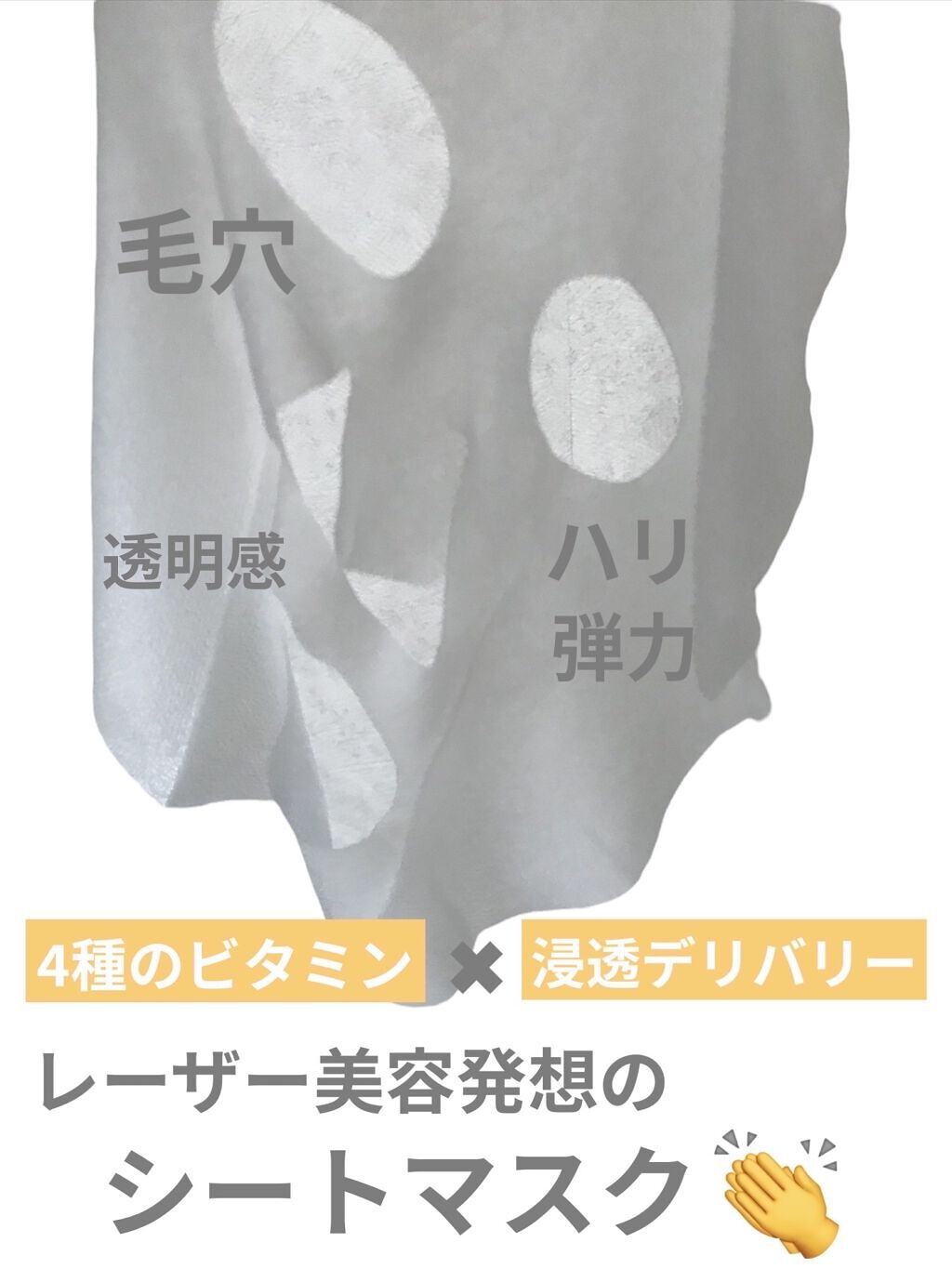 4種の濃厚ビタミンC配合・高密着、高浸透プレミアムシート・ナノカプセル採用・毛穴、くすみ、キメ、ハリ、ツヤのある肌へ✨ 中身は美容液たっぷりで厚手のシート。今まで使ってきたパックと違い、シートはザラザラしていて、初めての感触😌 剥がしたあとは、今まで使ったパックと違い馴染ませてもペタペタしないのは◎ お肌がしっとりしています♡