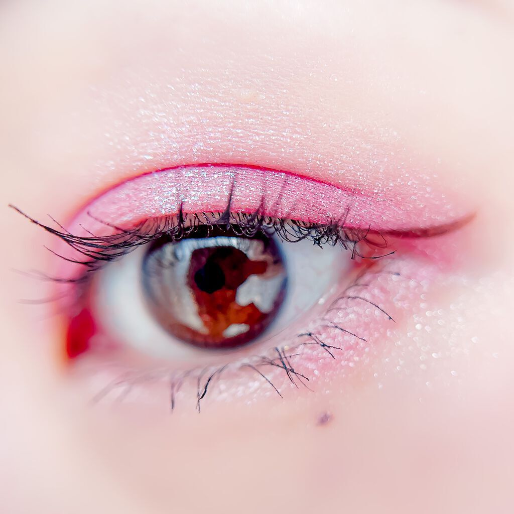 ピンクにグレージュも良いですね👌💗 今日は可愛らしい感じにしてみました💕 上下瞼黒目〜目頭側にラメを塗ってキラキラさせております🤩 目尻はマットのピンクを濃いめに重ねて💗 グレージュのアイライナーと相性◎