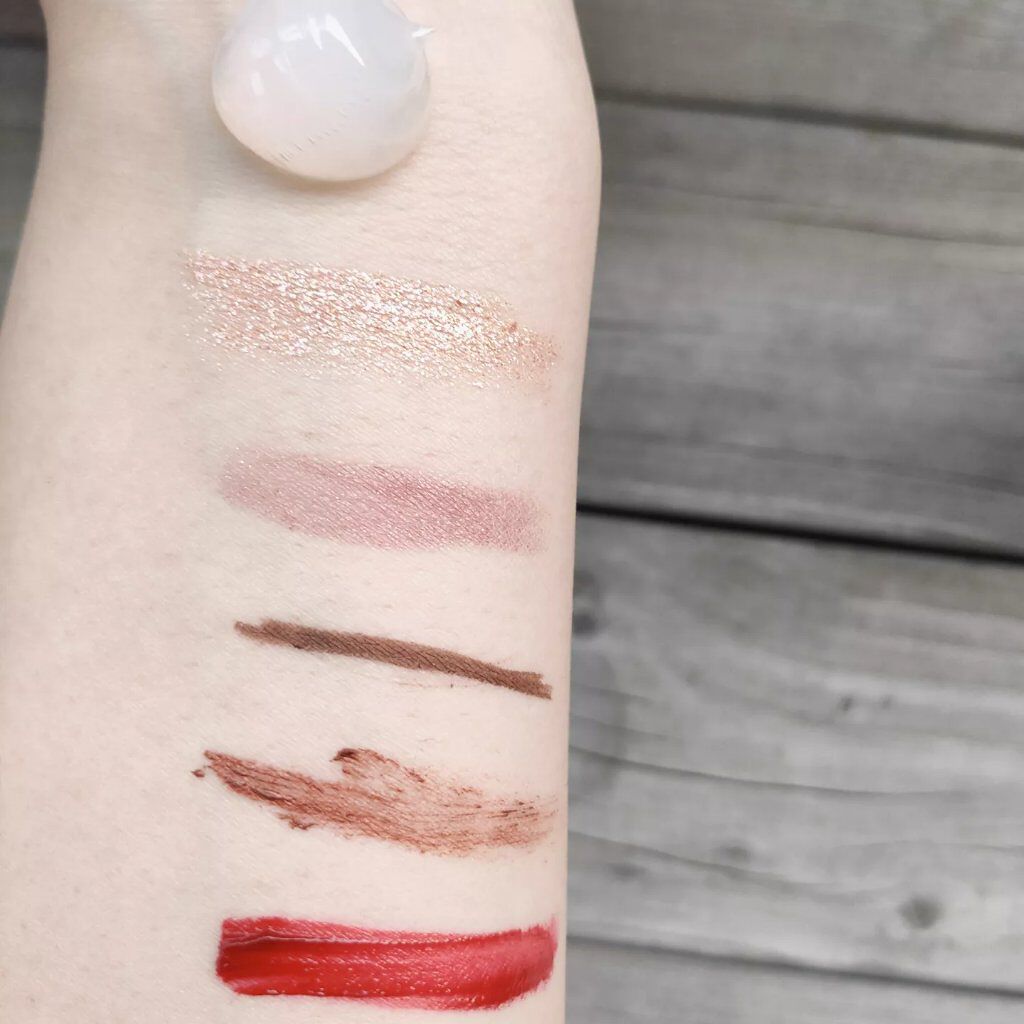 クールインソープは、いちごミルクのような甘くて柔らかい色合いのブルベ向けクールパレット。 01の繊細なホワイトピンクのグリッターが大好きで、下瞼目頭側に入れるとキラっとして可愛かったです。 ブラシよりも指やチップの方がガッツリつくので、濃いカラーを楽しみたいときとツールを使い分けてもいいかなと思います。