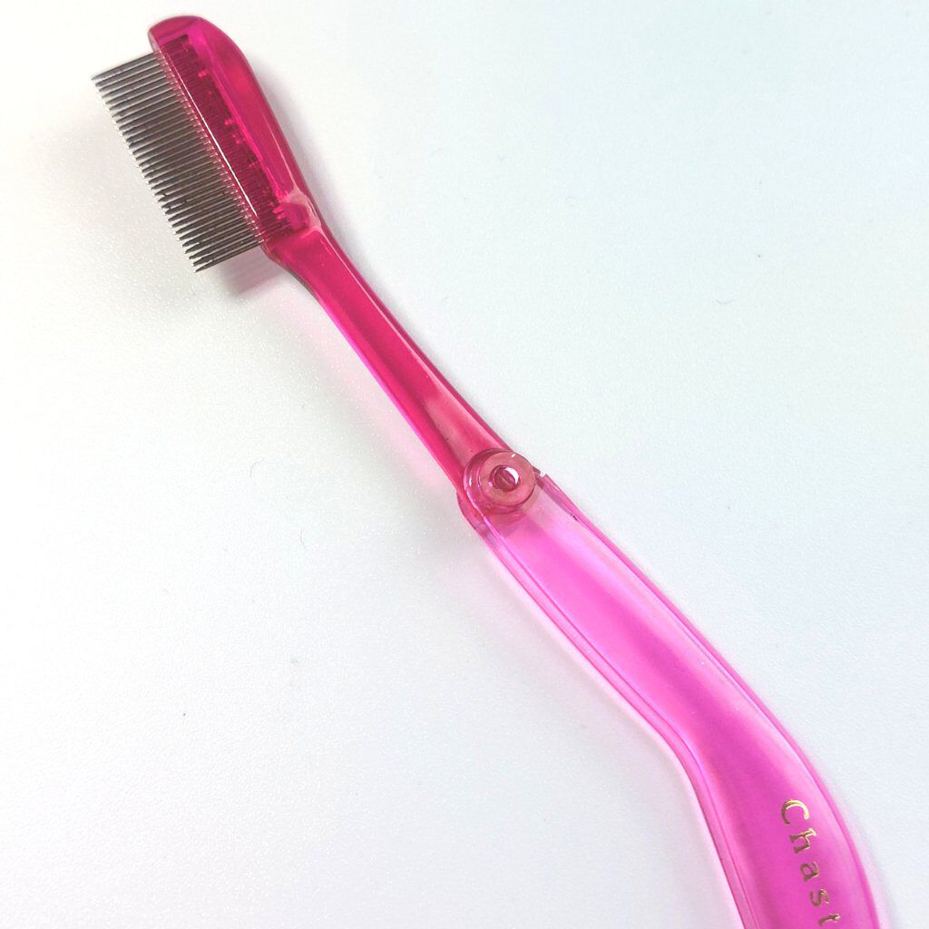 - スムーズにダマを取って、マスカラ後のまつげを1本1本無理なくセパレートできる金属製のマスカラコームです! 歯先をカバーする折りたたみ式なので、安全・コンパクトに携帯&保管ができる優れもの!