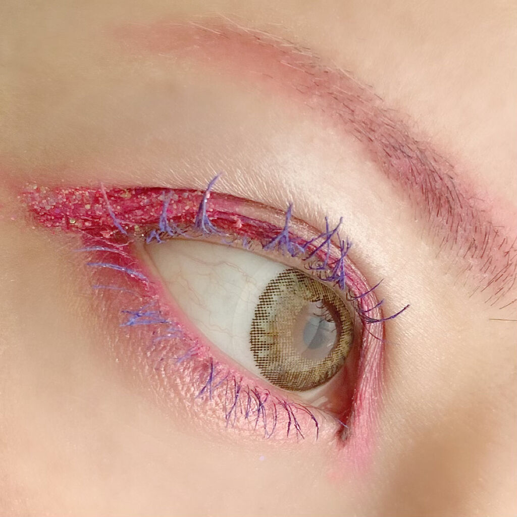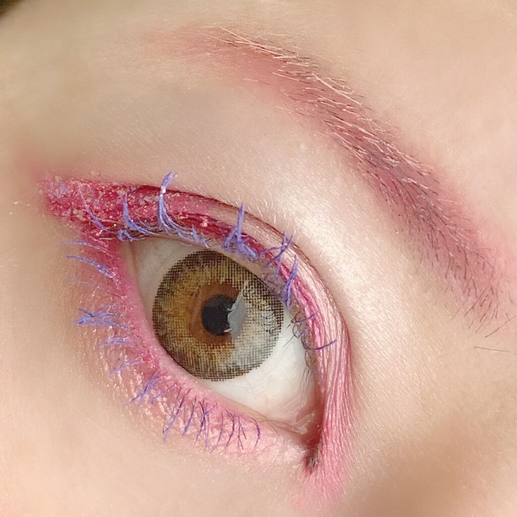 これ、980円でカラーマスカラ3本、アイライナー1本ついててホントにお得✨✨✨ 発色がめちゃくちゃいい😍 コットンピンクのカラーマスカラ使ったのですが、見てこのピンク😳 すごくない?かわいくない??