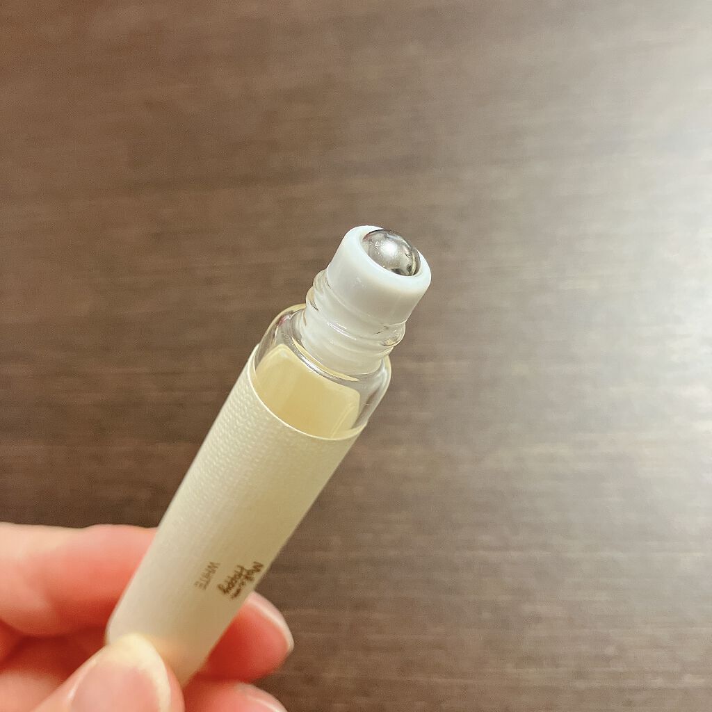 つける量を調整しやすい、ロールオンタイプのオードトワレです。 持ち運びにも便利なサイズ! 正直、「これはちょっと…」っと思うような、きつすぎる香りはなく(個人の意見です笑)、ふわっと香る良い香りがたくさんありました。 メイクミーハッピー オードトワレ WHITE ~白い花束をイメージした柔らかい香り~ 💬柔らかいフローラルの香りで、上品です