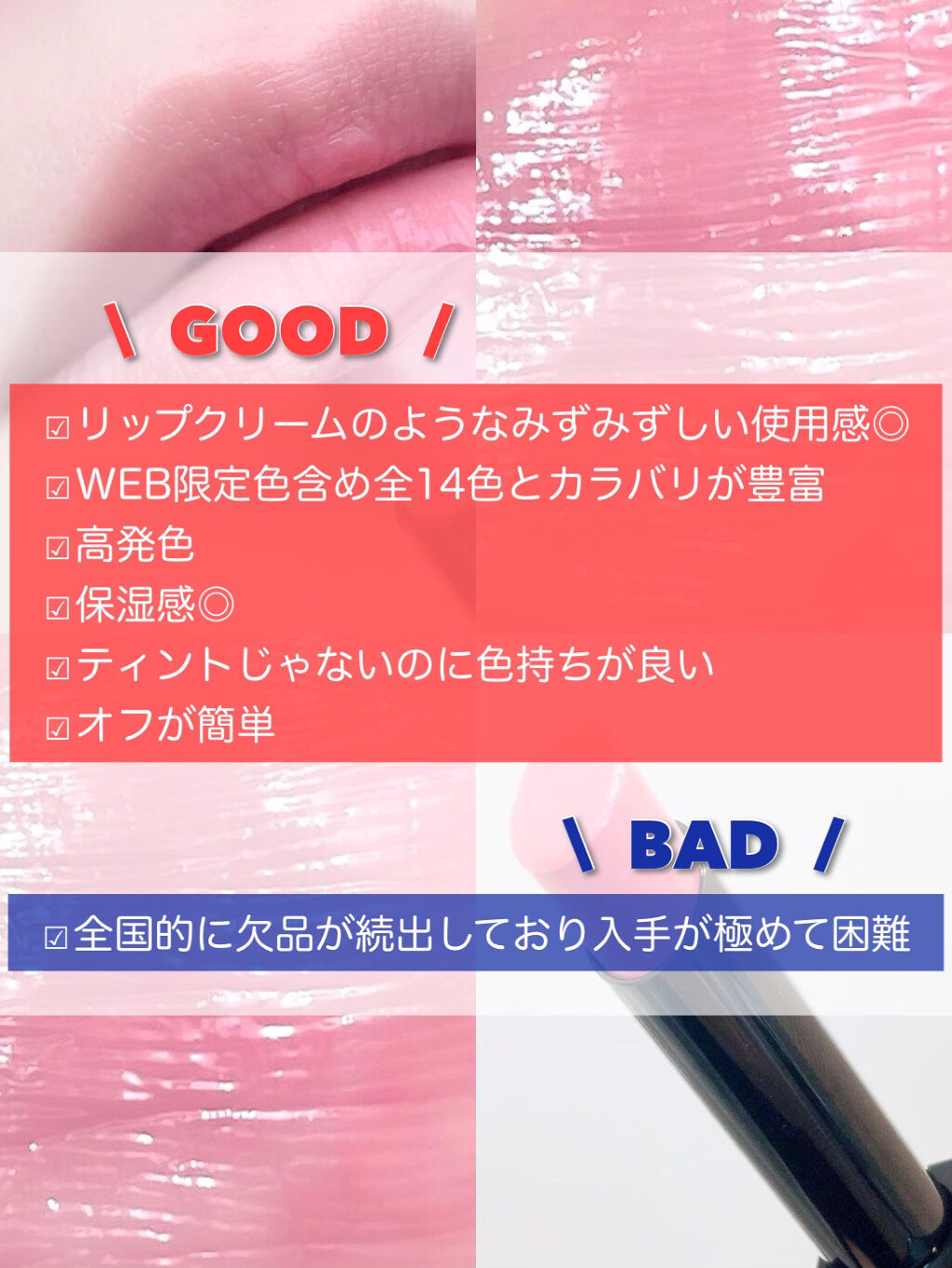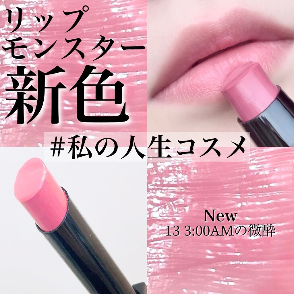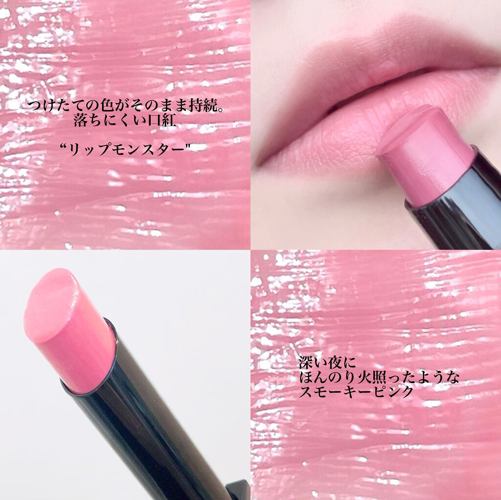 ひとぬりでとろけてツヤがあふれだす リップモンスターツヤバース。唇から蒸発する水分を活用してとろツヤジェル膜に変化する独自技術で、落ちにくい。 トロトロなのに唇に乗せると嫌なベタつきはなくてムラにもならずにスルスル伸び広がってかつしっかりカラー感も楽しめる濃密な発色♡ これは艶リップ好きさん試してみて欲しい! もし一色しか選べないとしたら私の推しはG02 ピンクムーンの雫♡