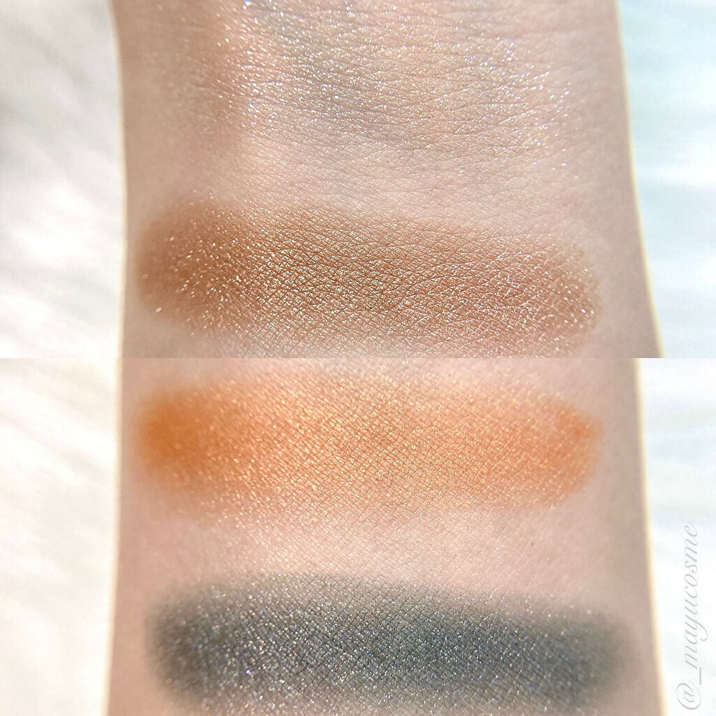 圧倒的好印象な甘口ベージュパレットでお局様も唸るしかないかも… ベージュ〜ブラウンのベーシックな配色にコーラルピンクのラメが効いてるからどこか優しげで都会的な洗練された印象に👩🏻💼 頼れる先輩感も出せるぞ👊 お局様と上手くやりつつ後輩に仕事を教えるっていう難しい立場の中堅社員の皆様におすすめのアイシャドウです。