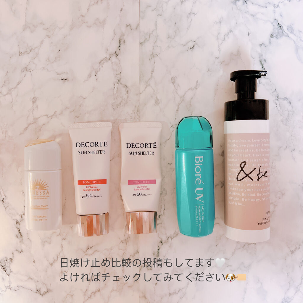ジェルって名前やったので、夏用にと思って買ったけど思ったより固めのテクスチャーやったので個人的にこれからの時期にちょうどいいかな〜と🍂 とはいえ、塗って重たいことはなくスキンケア感覚で使えてほのかにトーンアップ👏 SPF50+ PA++++(最高値)スーパーウォータープルーフ洗顔・ボディソープで簡単オフヒアルロン酸配合 1,000円代で大容量🏅コスパめっちゃいいです✨
