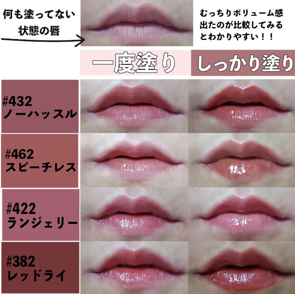 唇の色が血色よく見えるヌーデイカラー 独自のアプリケーターが縦皺に入り込んで消してくれる! プランピング効果で唇がボリュームアップ! しっかり密着して粘度高いのに、グロス独特のべたつきがない! しっかりした発色でリキッドルージュみたいなのに乾燥しないからめっちゃいい😳 プランピング効果で、むっちりボリュームが出た唇にしてくれる😭✨ どの色もパーソナルカラー選ばす使えそう〜 単独で塗ってもしっかり塗りで綺麗に発色します! マットリキッドと組み合わせたりして、色んな色味と雰囲気変えて使うのもお勧め♡