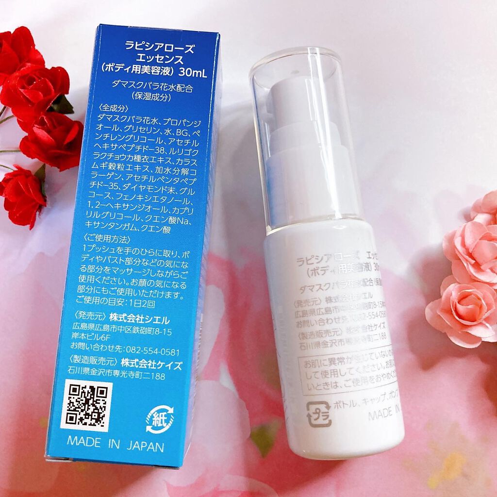 こちらは皮膚のハリに着目した新発想の美容液。バストケアだけでなく、ほうれい線や涙袋、その他小じわケアにもオススメだそうです。 女性ホルモンの乱れに良いローズの成分&香りと、保湿、ハリ、美肌成分がたっぷり! バストアップサロンでも使用している美容液なので、自宅でもサロン級のバストケアができちゃいます。 さらっとした透明の美容液、肌につけるととろみを感じます。 気になる目元や口元、そしてお風呂上がりにはバストに馴染ませてマッサージ。 ローズの香りに包まれながらケアできるので気分も良くなるし、女性らしさがアップしそうです❤️