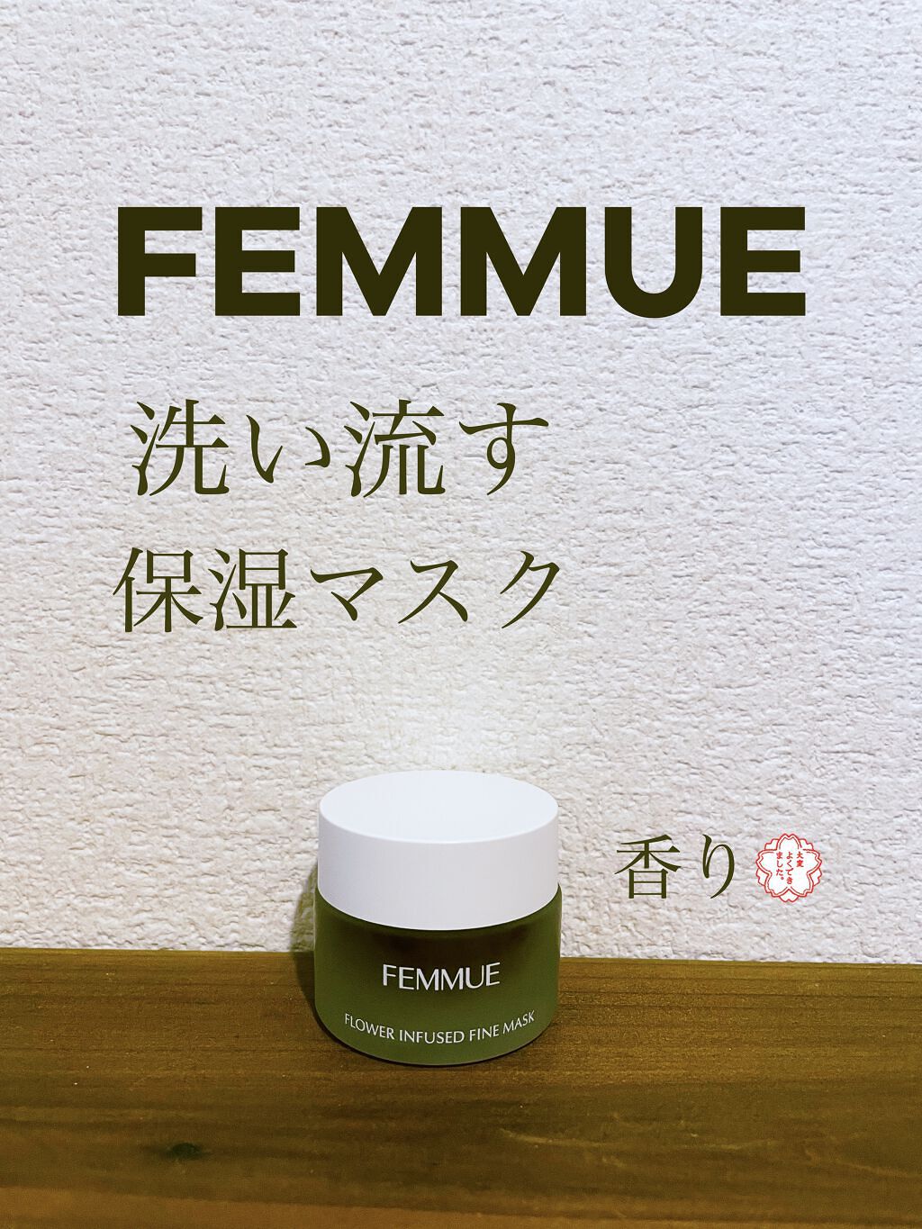 FEMMUEフラワーインフューズドファインマスク¥4,620フローラルな香りでとても癒されます💐花びらが入っていて塗ると顔中ゴミだらけやん!と笑ってしまいますが、ベタつかず肌がひんやりクールダウンするので今の時期はおすすめです✨塗ったジェルを...