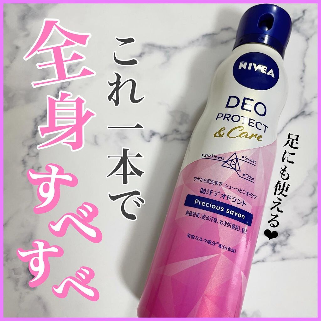 - ニベアから“キレイ女子の新シュー慣”新デオドラントスプレー登場! 汗のニオイを抑えるのは当たり前。美容ミルク成分も配合のデオドラント! 『ニベア デオプロテクト&ケア スプレー』は、これ1本でワキから足先まで全身の気になる部位をデオドラントケア。 殺菌成分(IPMP)配合で、特に気になる3つの汗臭タイプ「すっぱいニオイ」「ツンとしたニオイ」「蒸れた/モワッとくるニオイ」の元になるニオイ菌を殺菌して防臭。汗やニオイを防ぐのはもちろん、皮脂吸収パウダー(基剤)配合により、不快な肌のべたつきも抑え、全身するるんとした肌ざわりに。 【医薬部外品】皮ふ汗臭、わきが(腋臭)、制汗 【内容量】150g ニベア デオプロテクト&ケア スプレー フレグランスフリー ニベア デオプロテクト&ケア スプレー プレシャスサボンの香り ニベア デオプロテクト&ケア スプレー ラグジュアリーフローラルの香り