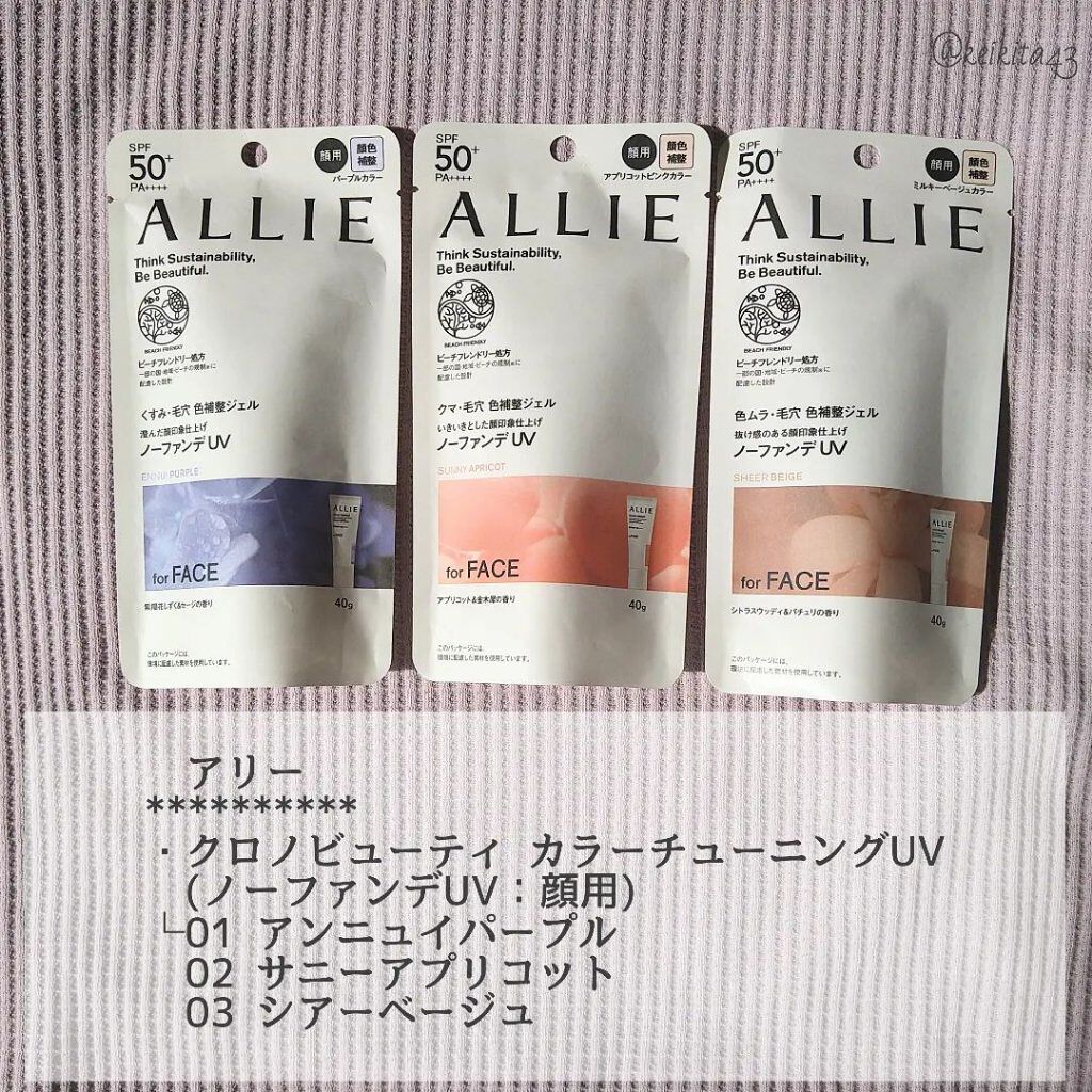 最近話題のALLIEのクロノビューティカラーチューニングUV03使ってみました!SPF50+PA++++価格:2322円(税込)ノーファンデUVと言われていて、"厚塗り感なく、絶妙な素肌感仕上げ ミルキーベージュの色補整効果で、 色ムラ・毛穴...