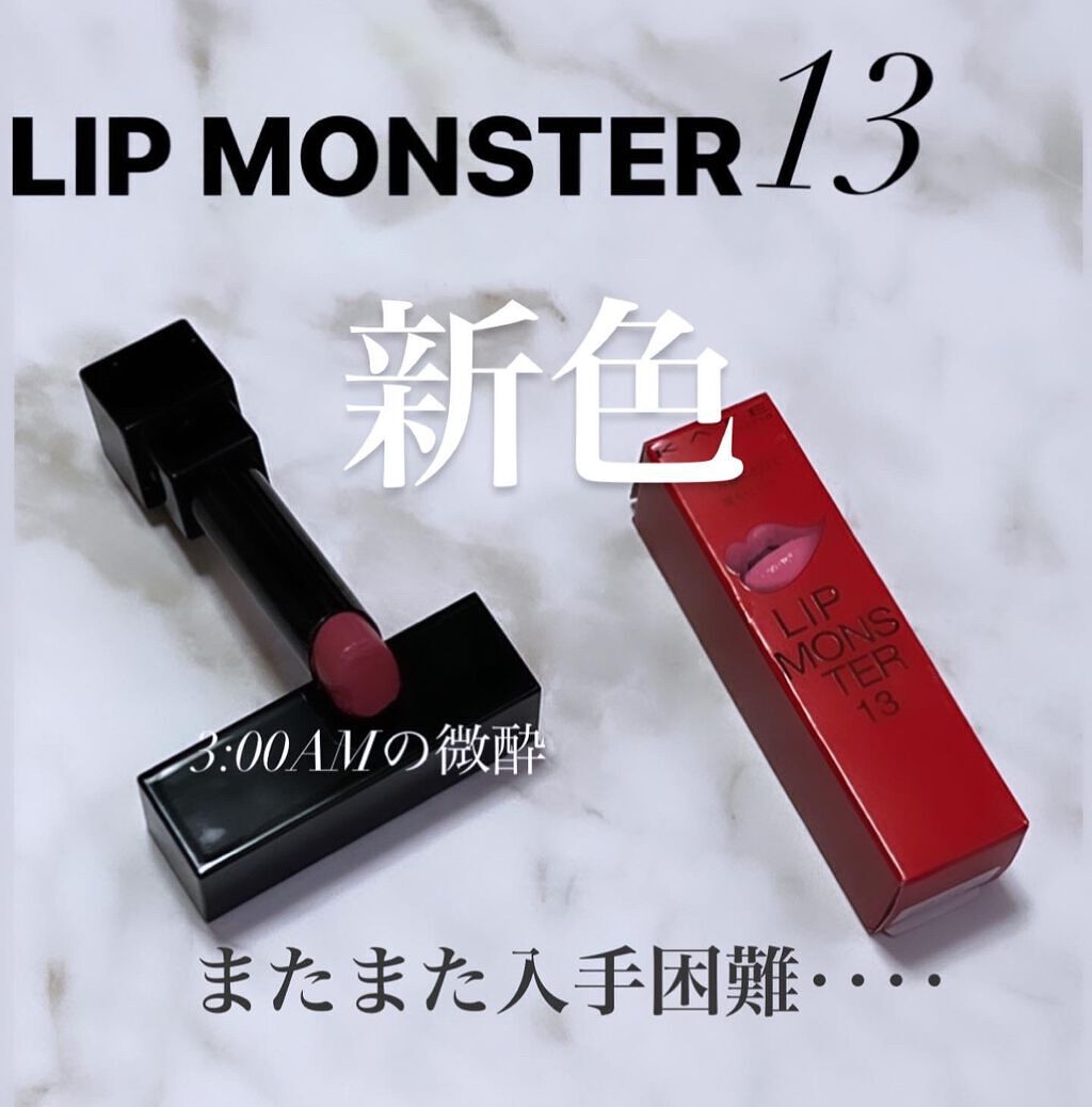 - 落ちにくさも美発色もよくばりたい、つけたての色が長時間持続する人気の口紅リップモンスター。 唇から蒸発する水分を活用して密着ジェル膜に変化する独自技術※で、つけたての色が長時間持続。 高発色&保湿。 ※当社独自の色持ち技術 ■花火のようにまぶしくきらめく 繊細なラメが際立つ限定色 EX-6 ピンクカラー×青ラメ【ロケット花火流星群】 EX-7 オレンジカラー×黄&緑ラメ【100万発の線香花火】 EX-8 レッドカラー×緑ラメ【打ち上げ花火ブランコ】 ■深みレッド系カラーの限定色 EX-9 戦慄の喜笑 (限定色) EX-10 狂気の怒号 (限定色) 【2025クリスマスコフレ】 落ちにくいリップモンスターから、唇の血色感を底上げする ホリデーシーズン限定の熱感ニュアンスベージュ系カラー登場。 EX-11 紅煙宿る贈り物(限定色):ボルドーベージュ系 EX-12 盗まれた1224mの星光(限定色):キャメルベージュ系