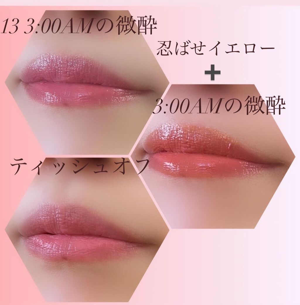 - <01 欲望の塊> テトライソステアリン酸ジペンタエリスリチル、トリ(カプリル酸/カプリン酸)グリセリル、オクチルドデカノール、ラウロイルグルタミン酸ジ(フィトステリル/オクチルドデシル)、ビスアルキル(C16-18)グリセリルウンデシルジメチコン、イソノナン酸イソトリデシル、水添ポリイソブテン、ラウロイルグルタミン酸ジ(オクチルドデシル/フィトステリル/ベヘニル)、パラフィン、合成ワックス、ダイマージリノール酸(フィトステリル/イソステアリル/セチル/ステアリル/ベヘニル)、マイクロクリスタリンワックス、水添マイクロクリスタリンワックス、ヒドロキシステアリン酸エチルヘキシル、トコフェロール、ホホバ種子油、オリーブ果実油、アーモンド油、(エチレン/プロピレン)コポリマー、ポリエチレン、ジメチコン、(+/-)(チタン/酸化チタン)焼結物、マイカ、ラウロイルアスパラギン酸Na、ラウロイルリシン、塩化亜鉛、酸化チタン、酸化鉄、水酸化Al、硫酸Ba、トリイソステアリン酸イソプロピルチタン、酸化スズ、ホウケイ酸(Ca/Al)、合成フルオロフロゴパイト、黄4、黄5、赤104(1)、赤201、赤202 <02 ピンクバナナ> テトライソステアリン酸ジペンタエリスリチル、トリ(カプリル酸/カプリン酸)グリセリル、オクチルドデカノール、ラウロイルグルタミン酸ジ(フィトステリル/オクチルドデシル)、ビスアルキル(C16-18)グリセリルウンデシルジメチコン、イソノナン酸イソトリデシル、水添ポリイソブテン、ラウロイルグルタミン酸ジ(オクチルドデシル/フィトステリル/ベヘニル)、パラフィン、合成ワックス、ダイマージリノール酸(フィトステリル/イソステアリル/セチル/ステアリル/ベヘニル)、マイクロクリスタリンワックス、水添マイクロクリスタリンワックス、ヒドロキシステアリン酸エチルヘキシル、トコフェロール、ホホバ種子油、オリーブ果実油、アーモンド油、(エチレン/プロピレン)コポリマー、ポリエチレン、ジメチコン、(+/-)(チタン/酸化チタン)焼結物、マイカ、ラウロイルアスパラギン酸Na、ラウロイルリシン、塩化亜鉛、酸化チタン、酸化鉄、水酸化Al、硫酸Ba、トリイソステアリン酸イソプロピルチタン、酸化スズ、ホウケイ酸(Ca/Al)、合成フルオロフロゴパイト、黄4、黄5、赤104(1)、赤201、赤202 <03 陽炎> テトライソステアリン酸ジペンタエリスリチル、トリ(カプリル酸/カプリン酸)グリセリル、オクチルドデカノール、ラウロイルグルタミン酸ジ(フィトステリル/オクチルドデシル)、ビスアルキル(C16-18)グリセリルウンデシルジメチコン、イソノナン酸イソトリデシル、水添ポリイソブテン、ラウロイルグルタミン酸ジ(オクチルドデシル/フィトステリル/ベヘニル)、パラフィン、合成ワックス、ダイマージリノール酸(フィトステリル/イソステアリル/セチル/ステアリル/ベヘニル)、マイクロクリスタリンワックス、水添マイクロクリスタリンワックス、ヒドロキシステアリン酸エチルヘキシル、トコフェロール、ホホバ種子油、オリーブ果実油、アーモンド油、(エチレン/プロピレン)コポリマー、ポリエチレン、ジメチコン、(+/-)(チタン/酸化チタン)焼結物、マイカ、ラウロイルアスパラギン酸Na、ラウロイルリシン、塩化亜鉛、酸化チタン、酸化鉄、水酸化Al、硫酸Ba、トリイソステアリン酸イソプロピルチタン、酸化スズ、ホウケイ酸(Ca/Al)、合成フルオロフロゴパイト、黄4、黄5、赤104(1)、赤201、赤202 <04 パンプキンワイン> テトライソステアリン酸ジペンタエリスリチル、トリ(カプリル酸/カプリン酸)グリセリル、オクチルドデカノール、ラウロイルグルタミン酸ジ(フィトステリル/オクチルドデシル)、ビスアルキル(C16-18)グリセリルウンデシルジメチコン、イソノナン酸イソトリデシル、水添ポリイソブテン、ラウロイルグルタミン酸ジ(オクチルドデシル/フィトステリル/ベヘニル)、パラフィン、合成ワックス、ダイマージリノール酸(フィトステリル/イソステアリル/セチル/ステアリル/ベヘニル)、マイクロクリスタリンワックス、水添マイクロクリスタリンワックス、ヒドロキシステアリン酸エチルヘキシル、トコフェロール、ホホバ種子油、オリーブ果実油、アーモンド油、(エチレン/プロピレン)コポリマー、ポリエチレン、ジメチコン、(+/-)(チタン/酸化チタン)焼結物、マイカ、ラウロイルアスパラギン酸Na、ラウロイルリシン、塩化亜鉛、酸化チタン、酸化鉄、水酸化Al、硫酸Ba、トリイソステアリン酸イソプロピルチタン、酸化スズ、ホウケイ酸(Ca/Al)、合成フルオロフロゴパイト、黄4、黄5、赤104(1)、赤201、赤202 <05 ダークフィグ> テトライソステアリン酸ジペンタエリスリチル、トリ(カプリル酸/カプリン酸)グリセリル、オクチルドデカノール、ラウロイルグルタミン酸ジ(フィトステリル/オクチルドデシル)、ビスアルキル(C16-18)グリセリルウンデシルジメチコン、イソノナン酸イソトリデシル、水添ポリイソブテン、ラウロイルグルタミン酸ジ(オクチルドデシル/フィトステリル/ベヘニル)、