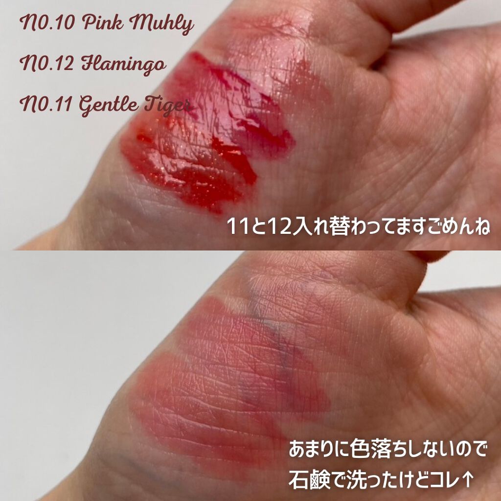 - 軽いオイルテクスチャーでべたつかず色移りが少ない、照り輝くパールコーティングティント。 グリッターパールがぶっくりした唇を、ローズヒップオイルやオリーブオイルやアボカドオイルなどがうるっとした唇を演出。