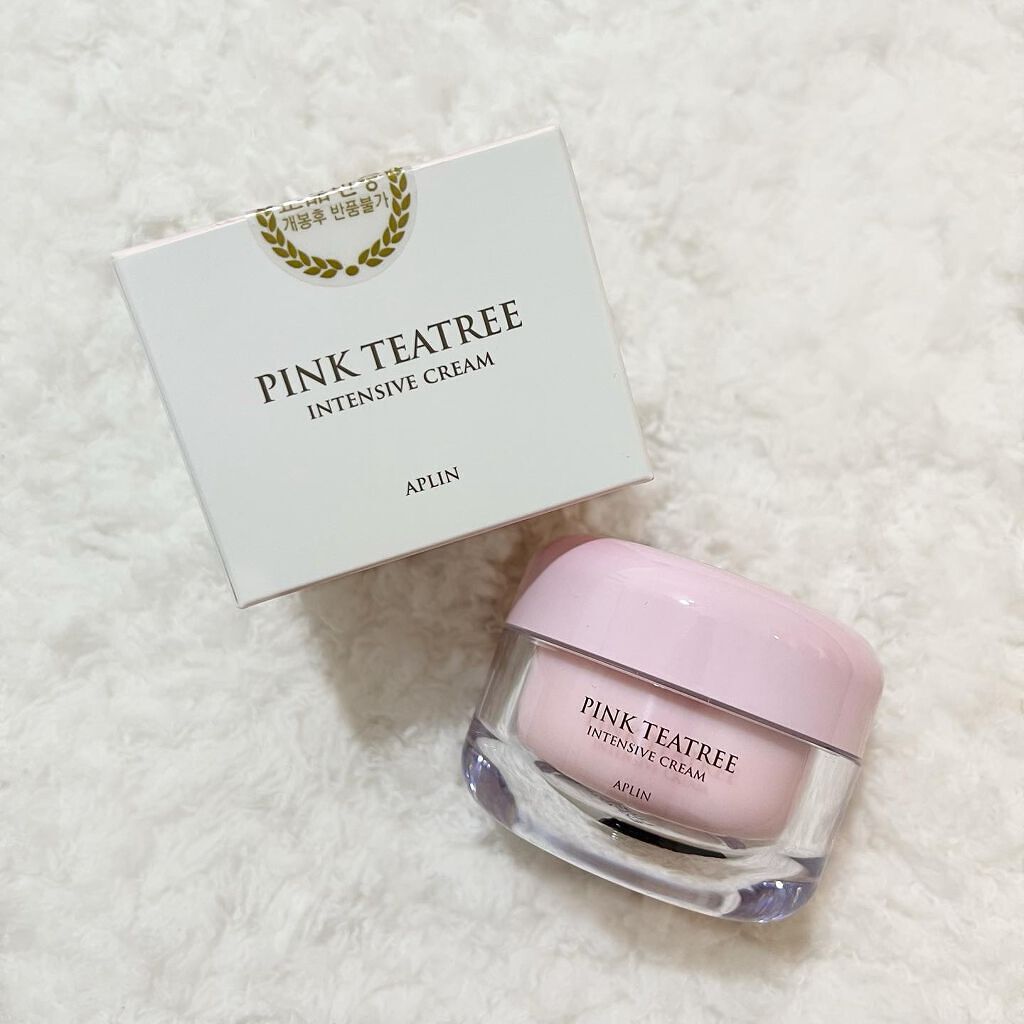 重すぎずべたつかない お肌を柔らげ水分補給 うるおいもっちり肌に ころんっとしたピンクが可愛いAPLINのピンクティーツリークリーム 刺激が少なくベタッとしない軽い使い心地のクリームなのでニキビが気になるときに使っています
