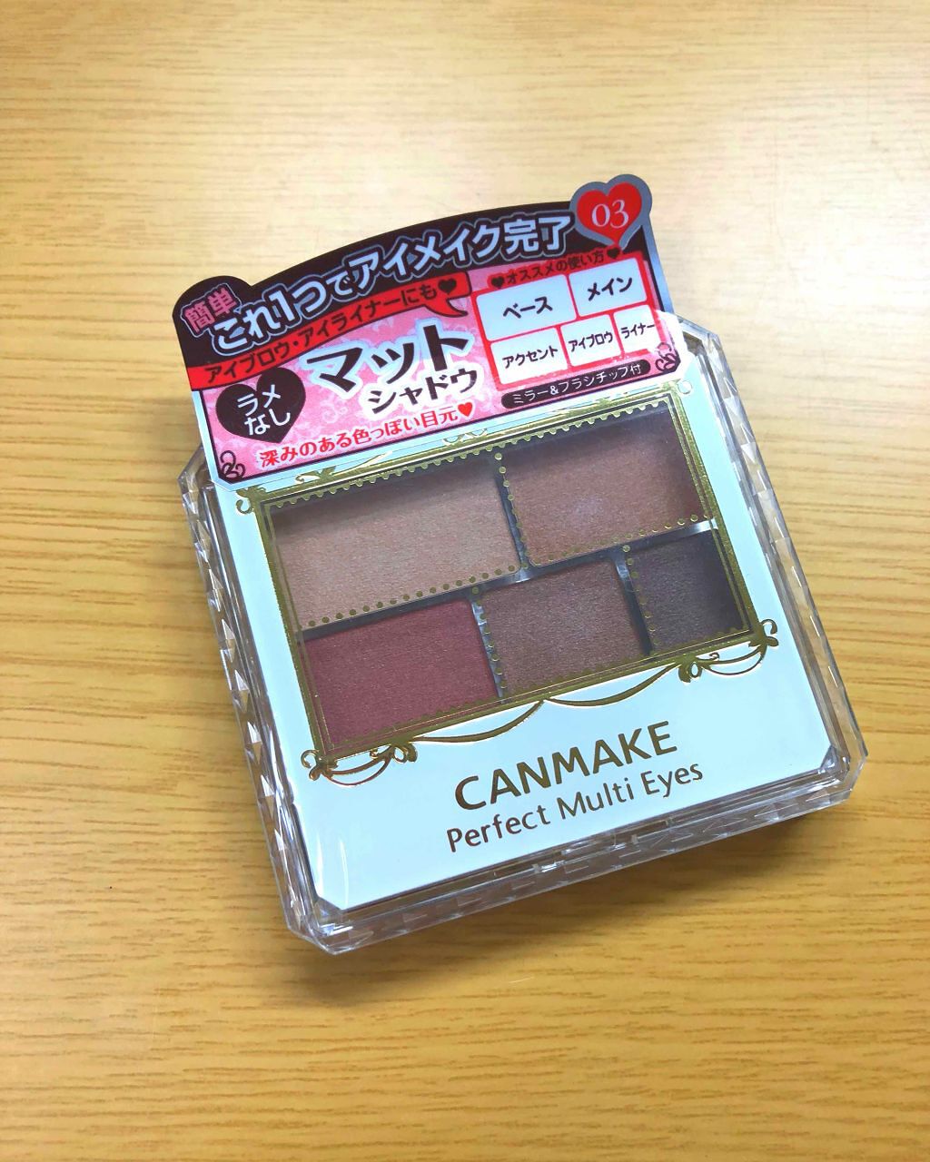 - アイメイク、これ1つで完了❤ アイシャドウ・アイブロウ・アイライナーとマルチに使える ラメなしマットな5色入りアイシャドウパレット 肌にとけ込むやわらかな陰影で、愛らしいナチュラルでか目に。 明度の違う同系色ブラウンで構成されたパレットなので、きれいなグラデーションが簡単に完成。 ナチュラルメイク派、学校・会社メイクにもぴったり! 撥水効果のあるオイルを配合することで、キレイが長持ちします。