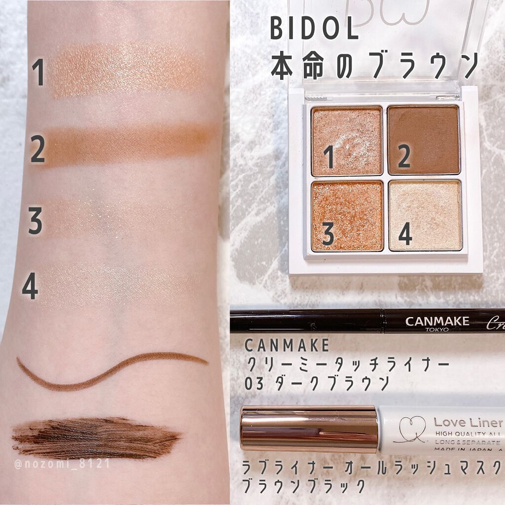 パールアイシャドウの艶めきがたまらない。これはあちこちで人気1位になるの分かる…。 本命のブラウンのパールカラーが好きすぎて公式ショップで永遠のブラウンと秘密のオレンジも買ったので次回レビューします。 bidolはいつも私に運命的な出会いをくれる🫶🏻