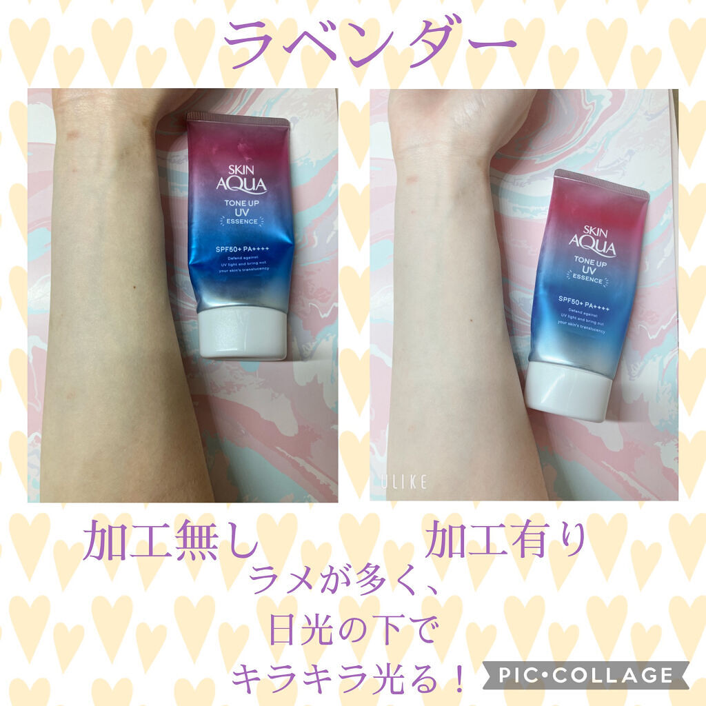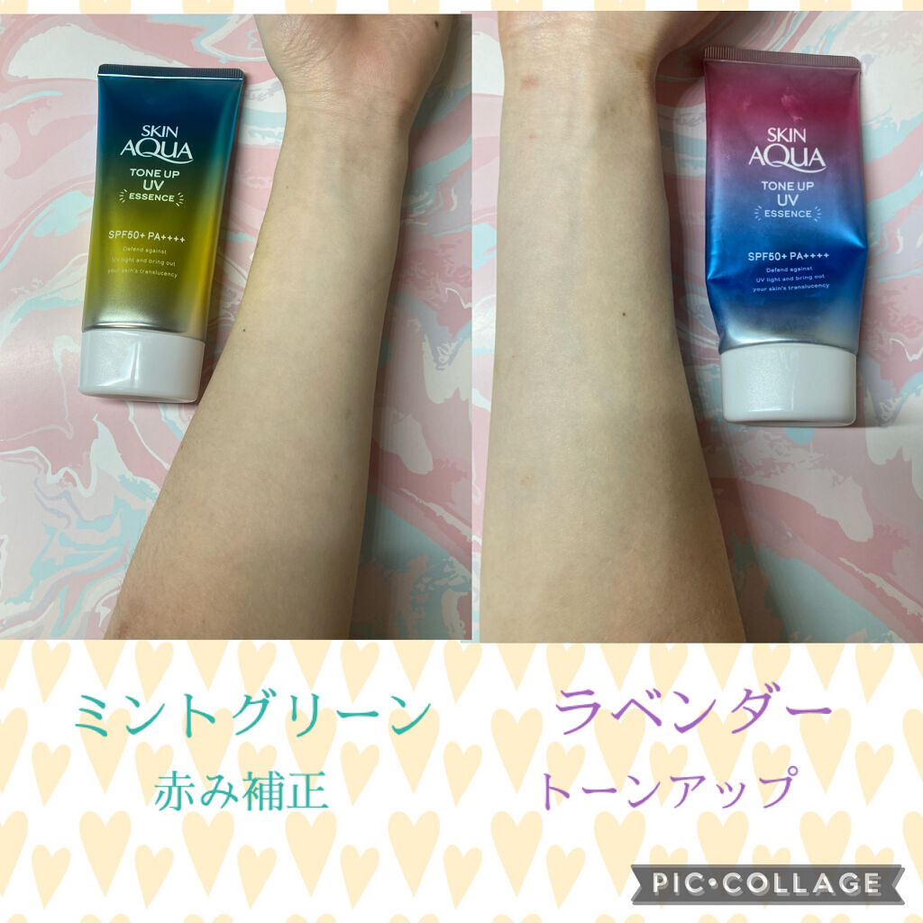 スキンアクアトーンアップUVエッセンスローズローズ初めて使いました!ラベンダーとグリーンは使ったことがあって、日焼け止めや化粧下地はラベンダーを買うことが多いけど、ローズは自然にトーンアップして顔色が良く見えるので良いなと思いました😍白くなり...