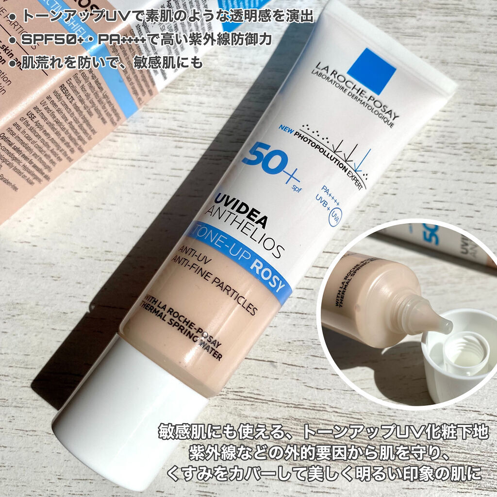 - 素肌のような透明感を演出するピンクのトーンアップUV*1。 光を乱反射し肌を綺麗に魅せるトーンアップテクノロジーを採用したトーンアップUVに、新色ローズが誕生。 肌なじみのよいピンクの色味で、澄んだ血色と上質なツヤのある素肌のような透明感肌*1を演出します。 SPF50+・PA++++の防御力で紫外線はもちろん、PM2.5を含む大気中微粒子*2などの外的要因から肌を守る独自のマルチプロテクションテクノロジーを搭載。 さらにエイジングケア*3を考えたスキンケア成分や、肌をやわらげ、肌本来のバリア機能(角層)をサポートする、ラ ロッシュ ポゼ ターマルウォーター(水:整肌成分)配合。 低刺激設計*4 石鹸で落とせます。 *1 メイクアップ効果による *2 物理的な肌の付着からの防御。すべての大気中物質をさすわけではありません *3 年齢に応じたうるおいを与えるケア *4 すべての人に皮膚刺激がおきないわけではありません。