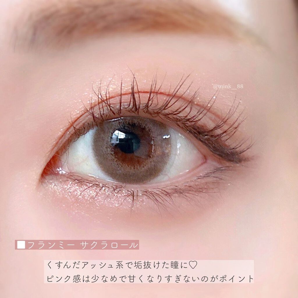 ほんのりピンクにブラウンのフチ デザインもナチュラルでふんわり盛れる🤍 くすみピンクと大きめのグラフィックで ガーリーな雰囲気に🎀 くすんだアッシュ系で垢抜けた瞳に♡ 透明感のある儚げなピンク♡ ピンク初心者さんにもおすすめ!