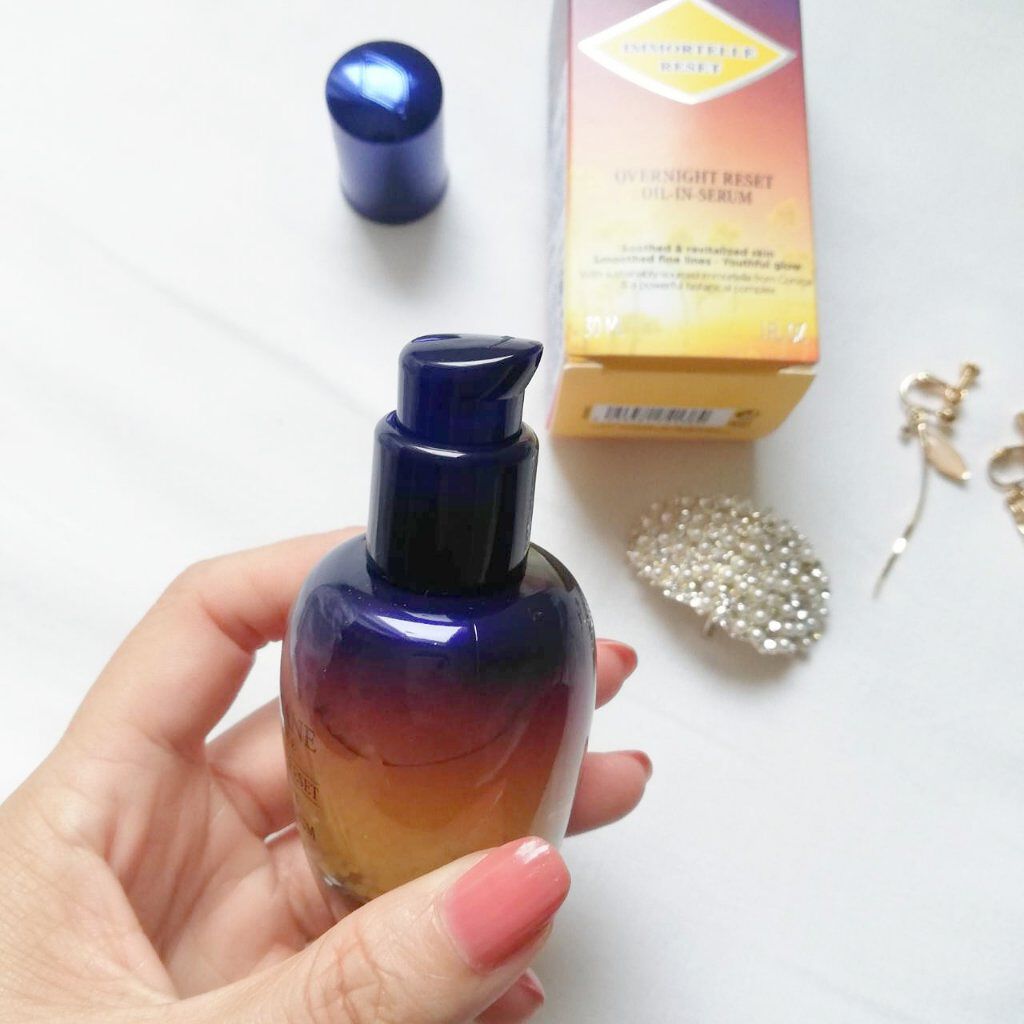 疲れたときほど使って欲しい夜用美容液、イモーテル オーバーナイトリセットセラム。 6時間でたっぷり眠ったようなハリつや肌を叶える夜用美容液。 ストレスを忘れさせてくれるような眠りに寄り添う穏やかな香りなんです。