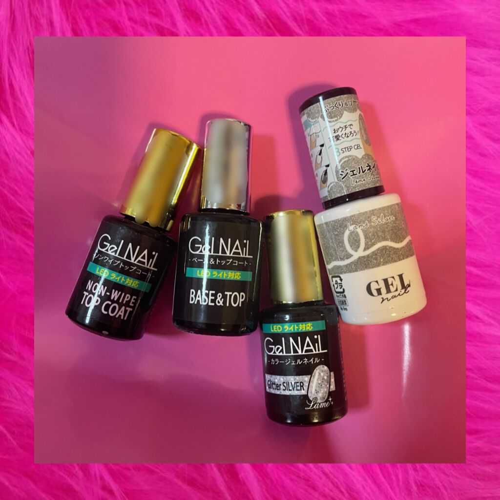 ダイソーのライトピンクはムラになりにくく、もし上手く行かなくても上からラメを重ねるのでセルフジェル初心者さんにもおすすめです!✨ 特にブルベさんにおすすめです! セリアのグリッタージェルもラメがザクザク入っていて、キラキラ輝いて可愛い🤍