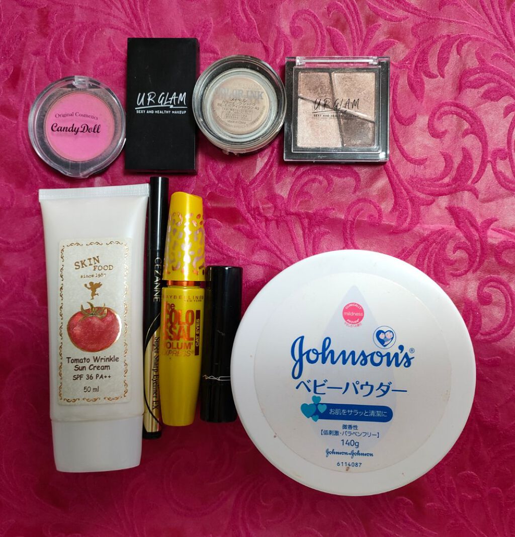 アリィー ニュアンスチェンジUV ジェル RSを、顔全体にまんべんなく塗ります。 RMK RMK ジェルクリーミィファンデーション 103を、顔全体にまんべんなく塗ります。 ジョンソンベビー ジョンソン ベビーパウダーを、顔全体にまんべんなく軽くはたきます。 THE BODY SHOP bronze shade warm glowを、両頬に塗ります。 KATE リフレクトミラーアイズ BR-1の締め色を、眉毛全体にまんべんなく塗ります。 URGLAM UR GLAMBLOOMING EYE COLOR PALETTE 01を、使用しました。 ちふれ リキッド アイライナー 筆ペンタイプ BK30 ブラックを、塗ります。 CEZANNE エアリーカールマスカラを、まつ毛全体にまんべんなく塗ります。 MAYBELLINE NEW YORK コロッサルボリュームエクスプレスを、まつ毛全体にまんべんなく塗ります。 MAYBELLINE NEW YORK SPステイ マットインク 135を、唇全体にまんべんなく塗ります。