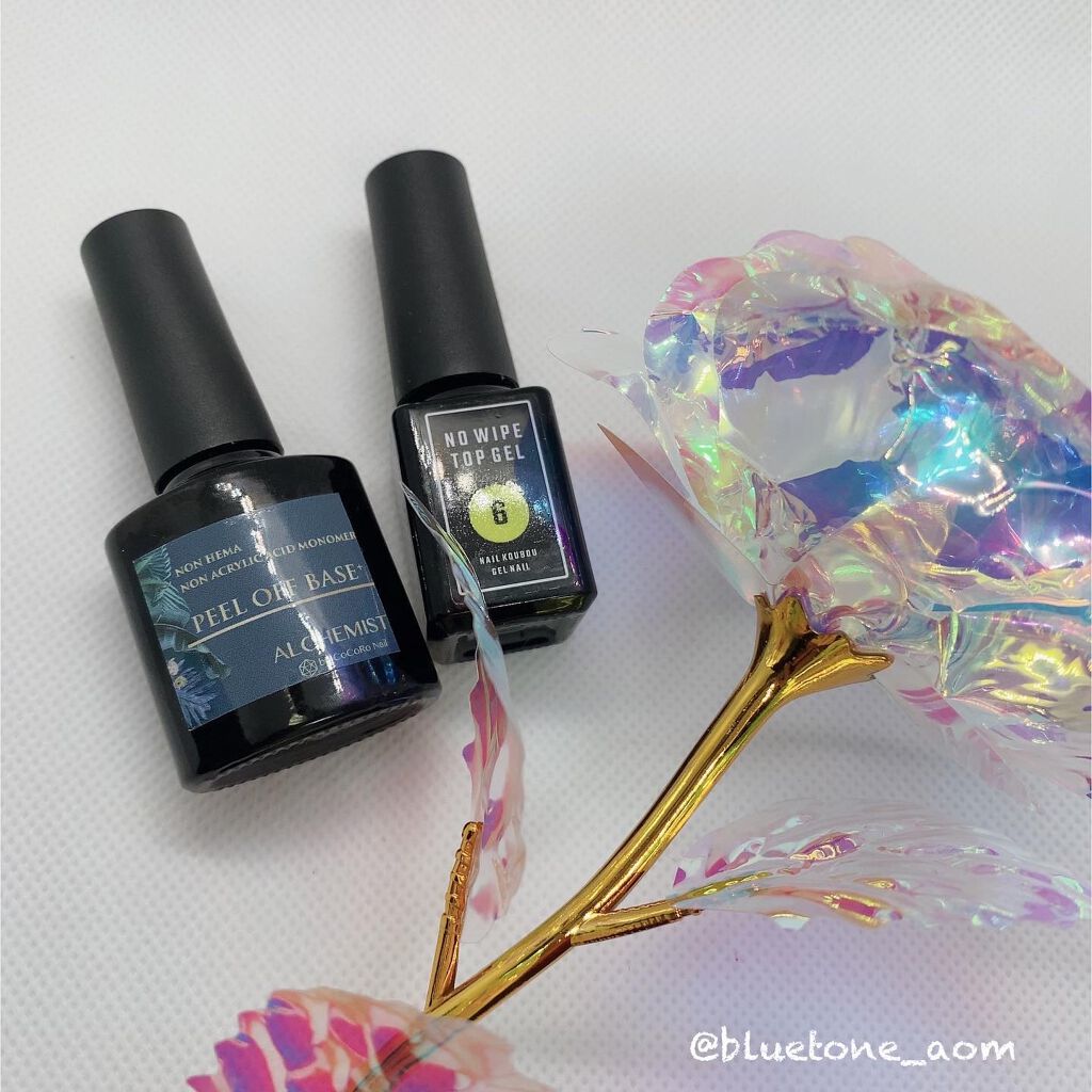 ベースカラーを塗ったらノンワイプトップを塗って硬化します。 クリア→ミラー感はあるけど、発色はそこまで濃くないのでガッツリシルバーを求めてる人は物足りないかも🤔 ホワイト→キレイにシルバーになりました! ミルキーホワイト→シャンパンゴールドみたいな落ち着いたゴールドっぽくなりました😳 ブラック→キレイにシルバーに!やっぱりブラックとシルバーは映えますね🤝ギラギラです! パウダーの粒子はちょっと大きめなのでちょっと不安でしたが擦ってみるとキレイにミラーになりました! ベースカラーで見え方も変わるので色々試しても面白いかもです🥰