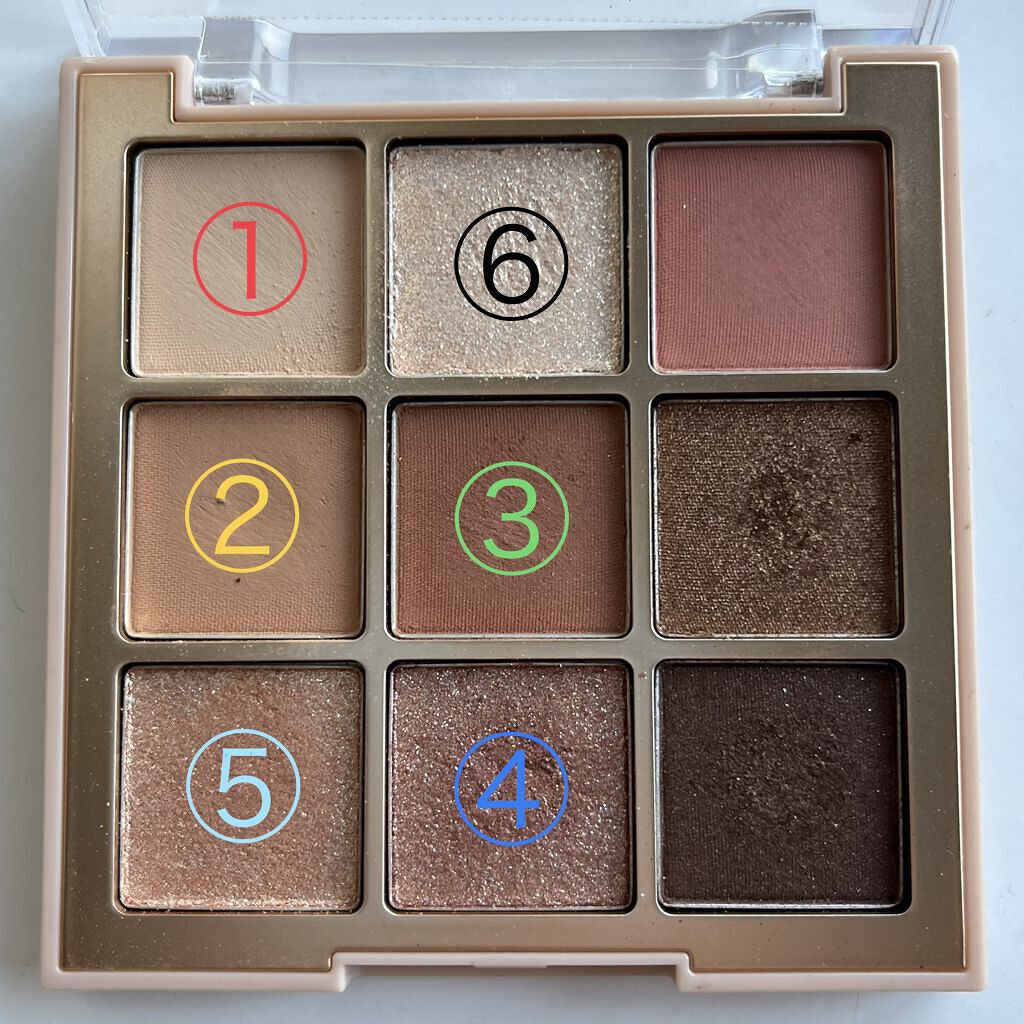 色合いは捨て色無しのベージュブラウン。粉質は思ったより発色してくれて◎ どのくらい色落ちするのかはまだ検証中。 左最上段のグリッター! こちらがすごい! 軽く指でまぶたに乗せようと思ったらごっそり取れてしまいました。そしてしっかり密着。 数回強めに擦ってやっと取れるレベル。 このグリッターだけでもお試しする価値あり✨ 使えるパレットです☺️