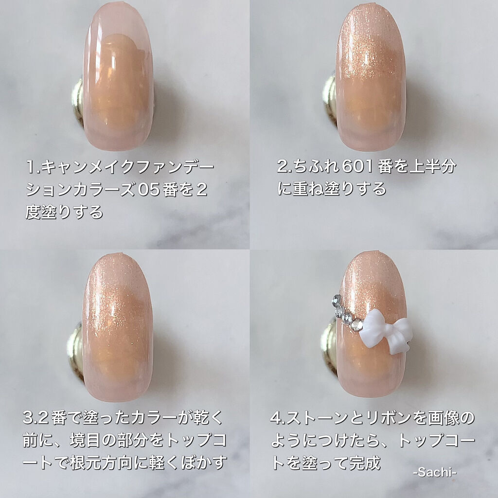 こんにちわ♡今回はキャンメイクのマニキュア2色で出来る、簡単グラデネイルのご紹介です💕先端にかけて白くなるベイビーブーマーは、美爪に見えるのでグラデの中でもとても人気デザインですよね(*´꒳`*)やり方は画像を参考にしていただければと思います...
