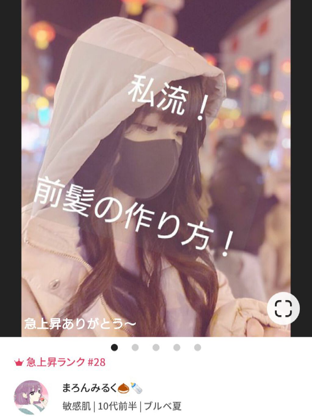 私の前髪の作り方を紹介します! 私の前髪セットに必要な物は4つです! 『マー&ミー ウォーター』で髪全体を濡らします。 ヘアアイロンで触覚➡️前髪➡️前髪サイド➡️前髪真ん中毛先少し巻く すぐに『ポイントへアスティック』を前髪全体とアホ毛にやります。 この後前髪の根元のみにケープをします。 目の細かいコームに横からケープを吹きかけて後れ毛にやると崩れやすい後れ毛、触覚もキープされます
