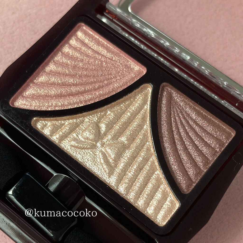 - パウダーなのにみずみずしい♥ 自然な立体感をつくりだす3色アイシャドウパレット 仕上げのコートで、ジューシー感&モチUP! メインカラー&ラインカラーはフィッティングオイル配合のしっとりパウダーで、 まぶたに吸いつくように溶け込み、ジューシーコートスフレで覆うことによって、 濡れたようにツヤめく愛されまぶたで透明感のある目元を演出します。