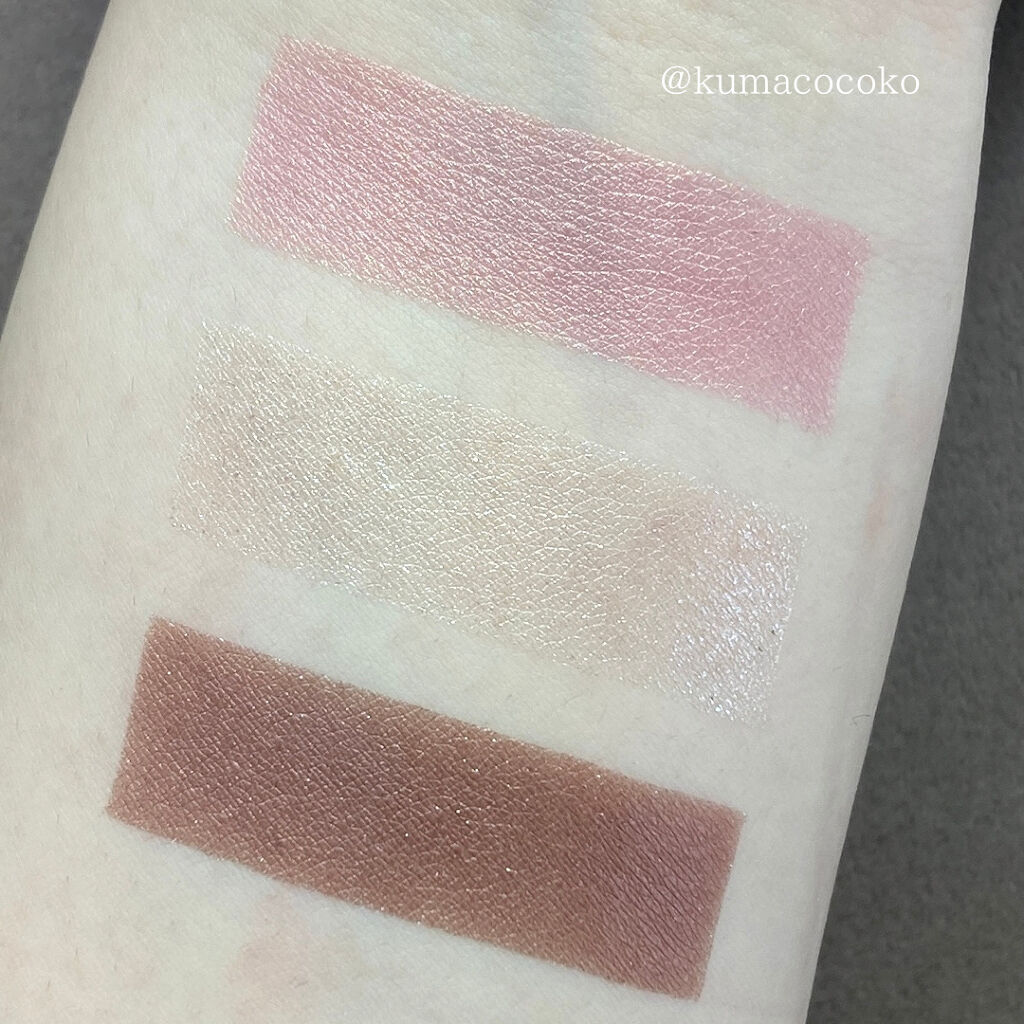 プチプラで、ハイライト・シェイド・メインカラーの3色が入った、使いやすいアイパレット。 ハイライトのスフレカラーにコーティングの機能があって、前後に塗ったカラーの持ちを良くするんだって👀‼️ 「テンダーフラワー」は肌なじみの良い黄みピンク系で、優し気な目元に🥰 660円なら、普段選ばない色にもチャレンジ出来る😤✨