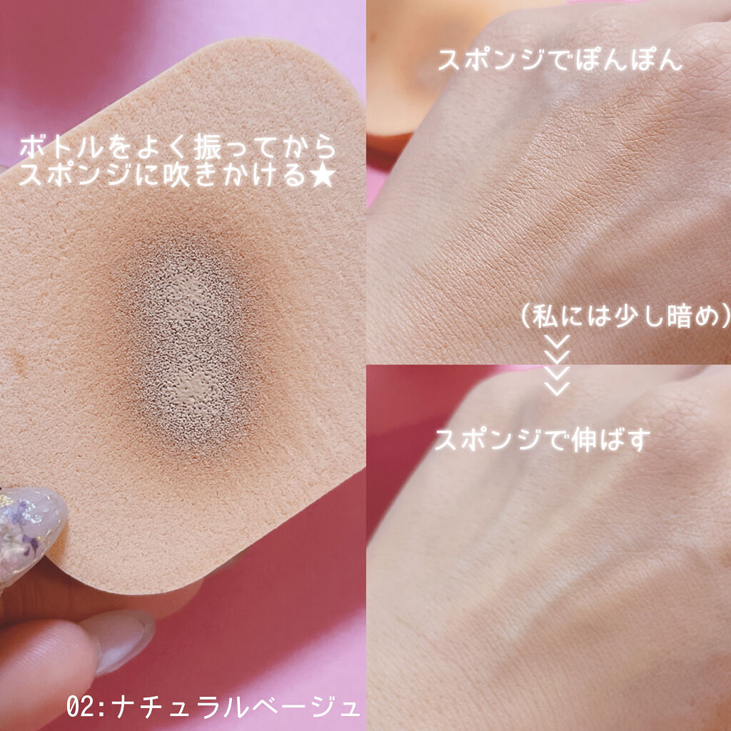 - クールな使い心地で、サラッと毛穴レス※。※メイクアップ効果による 1本で、シミ・色ムラもカバーし、なめらか均一肌が続くBBスプレー。SPF50+ / PA++++ ■ -5℃タッチで毛穴の気になる肌もキュッとひきしめ。 素肌そのものがきれいになったかのようななめらか均一肌を、一日中キープするBBスプレー。 ■ シミ・色ムラを自然にきちんとカバー。 カバー力が高い色ムラカバーパウダーを新配合。粉体自体が肌なじみにこだわったベージュのカバー粉体なので、自然な仕上がりでありながらも高いカバー力を叶えます。 ■ 化粧膜の密着力を高めることで、自然で高い毛穴カバー力を実現。 板状粉体と球状粉体の複合粉体が、肌への密着度が高く効率的に毛穴をソフトフォーカスします。ポアコンシールゲルによって均一な厚みのある化粧膜となり、毛穴カバー効果を高めます。 ■ マスクにつきにくく、美しい仕上がりを長時間キープ。 顔料に疎水処理を施した、マスクにつきにくい成分を配合することで、マスクへの色移りを低減。 皮脂・汗・水にも強い処方のため、蒸れやすいマスク内でも二次付着しにくい処方です。 ■ 紫外線だけでなく、肌あれや乾燥、大気中の微粒子(ちり・ほこり・花粉など)からも肌を守ります。 ■ 1品5役(美容液・日やけ止め・化粧下地・ファンデーション・フェイスパウダー) ■ スジやムラができにくく、肌に均一にしっかりと塗布できる専用スポンジ付き。 ■ パッチテスト済み ※すべてのかたに皮膚刺激が起きないというわけではありません。 ■ 無香料。植物成分の自然な香り。