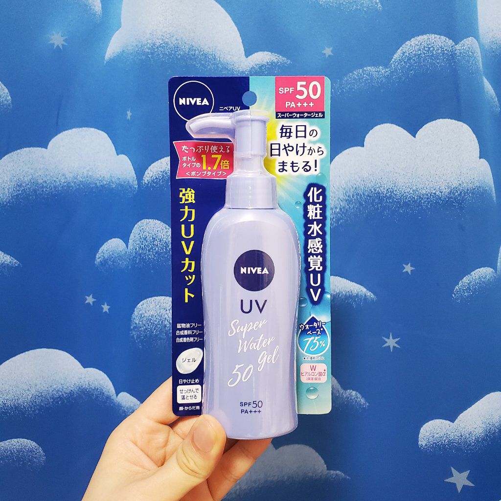 ■スーパーウォータージェル/ニベアSPF50PA+++140g毎年リピートで何度も購入している日焼け止めです。デイリーに使う体用の日焼け止めはこれ一択です。・良い点伸びの良いテクスチャ。ベタつかず軽い使い心地なのに乾燥を感じない。透明で白浮き...