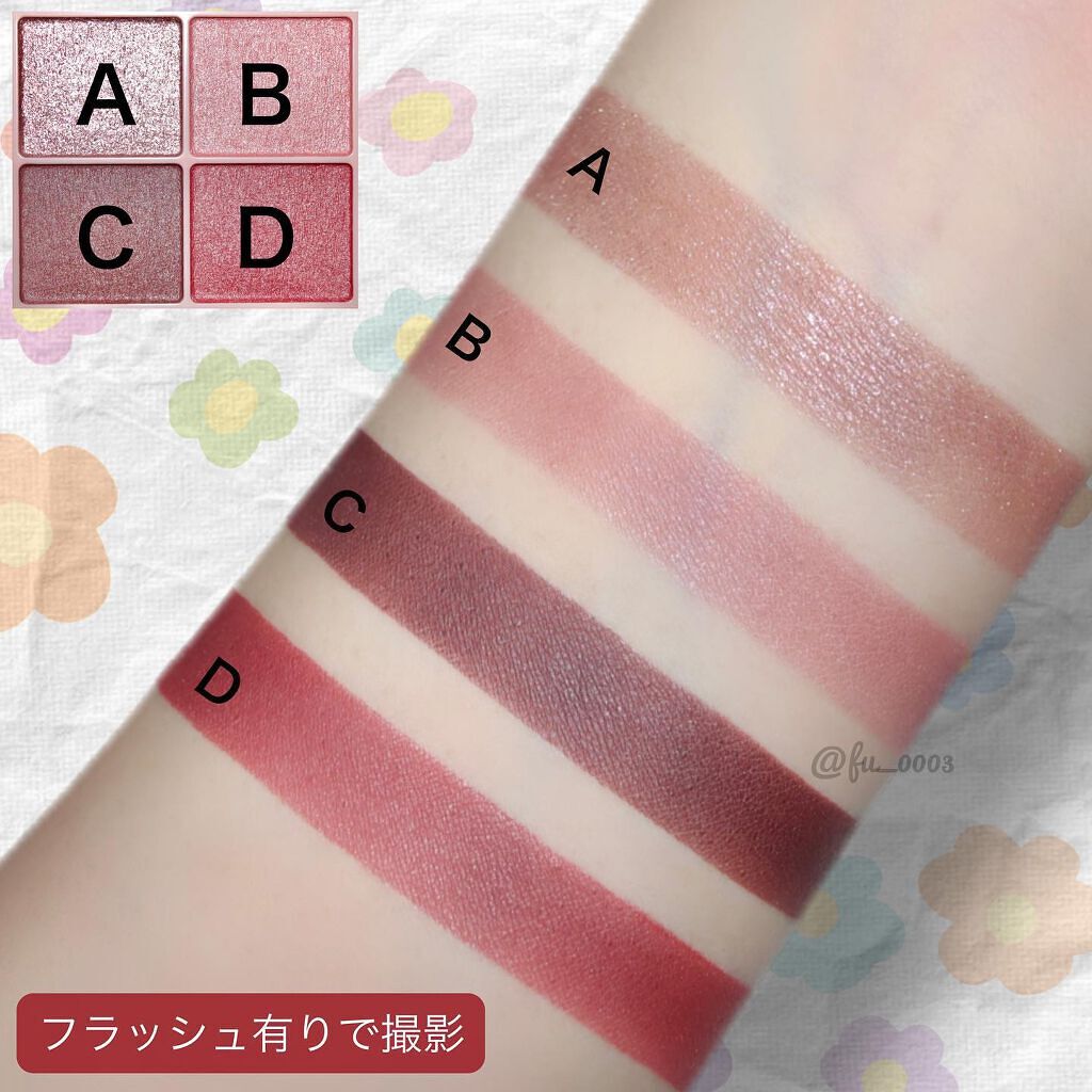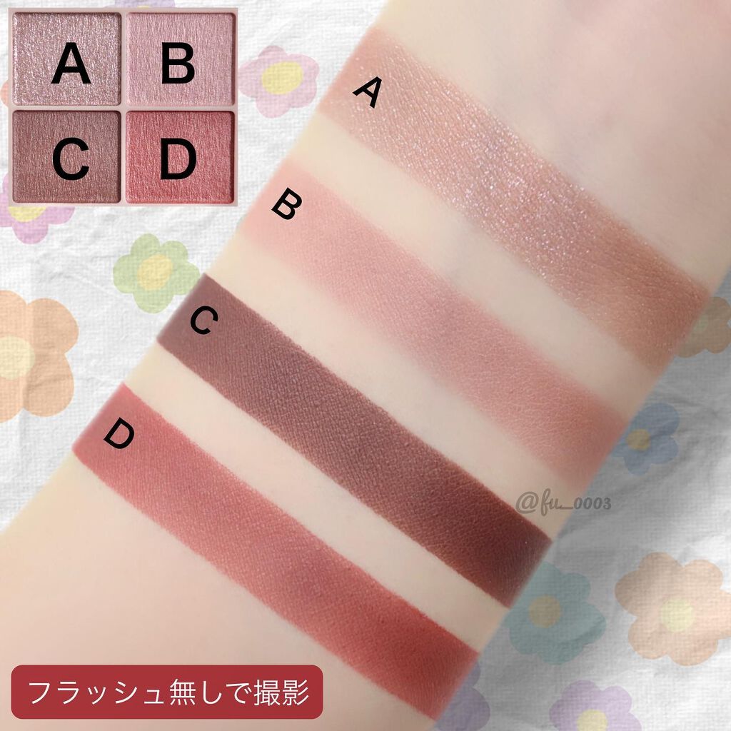 - シルキースフレアイズの姉妹品♡ 肌に溶け込むような透けマットシャドウ 透け感のある柔らかい仕上がりになるマット3色と、透け発色の繊細ラメ1色のパレットシャドウ♡ 完全マットアイや、ラメ×マットアイなど、メイクのパターンを楽しみましょう!